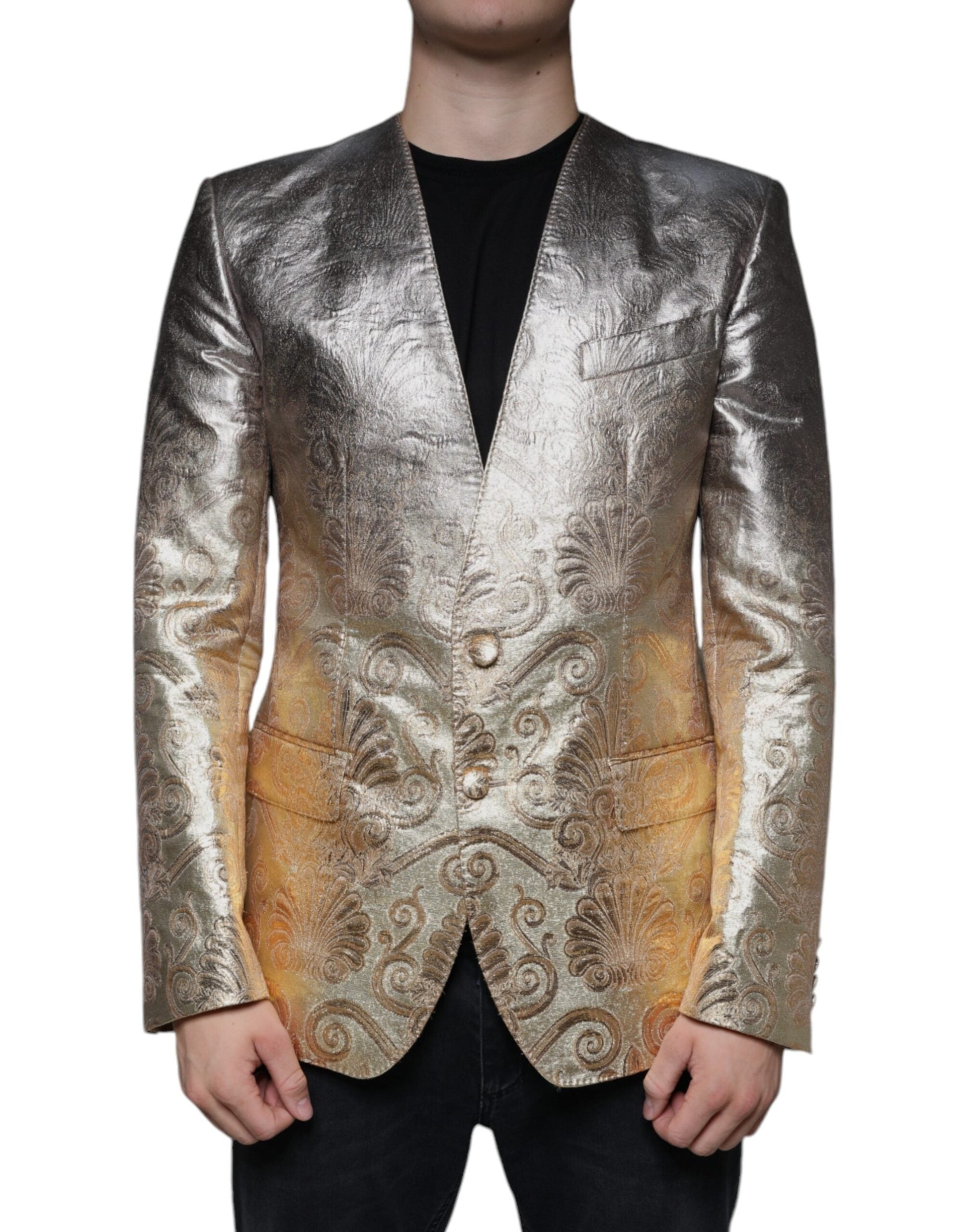 Dolce & Gabbana Gold Jacquard Single Breasted Dress Blazer
