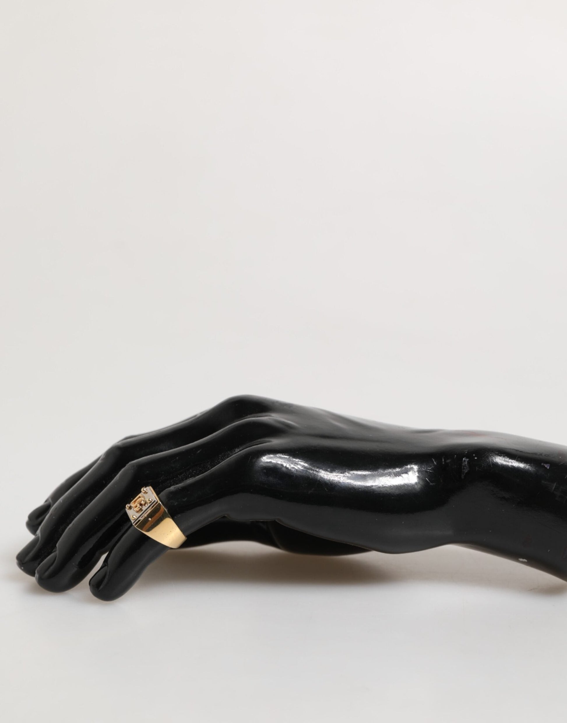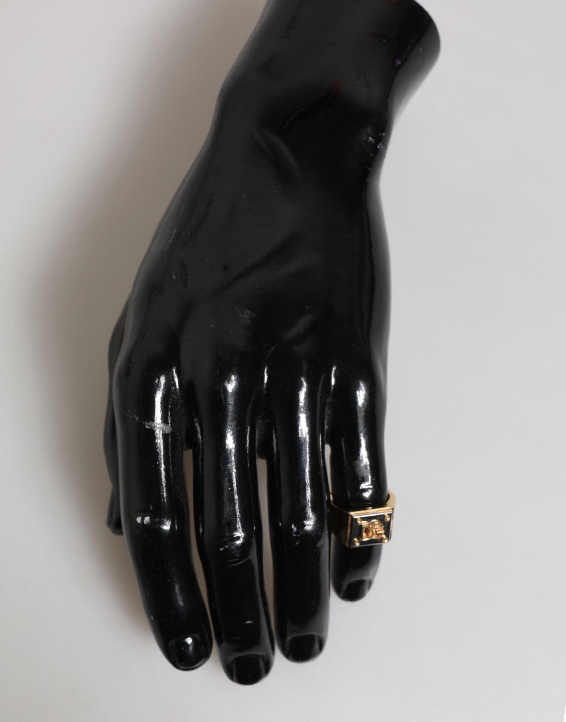 Dolce & Gabbana Gold Tone Brass Signet Square DG Logo Plaque Men Ring