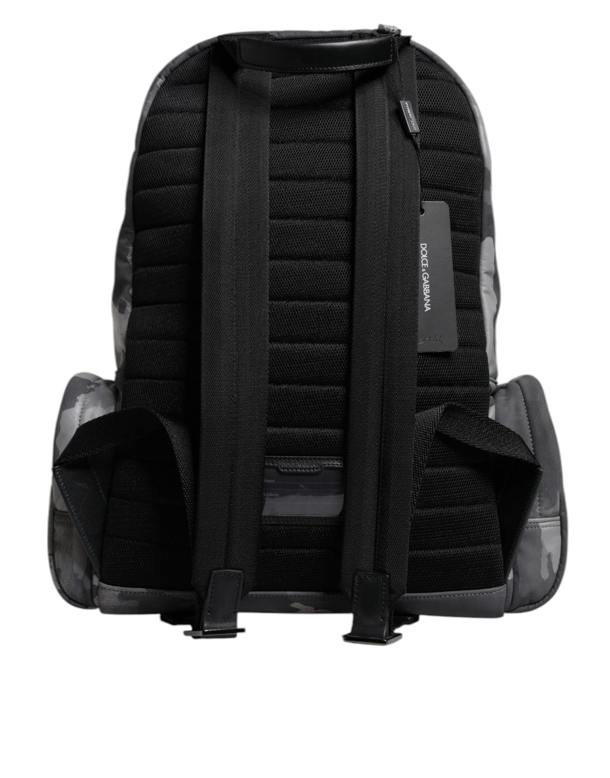 Dolce & Gabbana Gray Cotton Camouflage Logo Plaque Backpack Bag