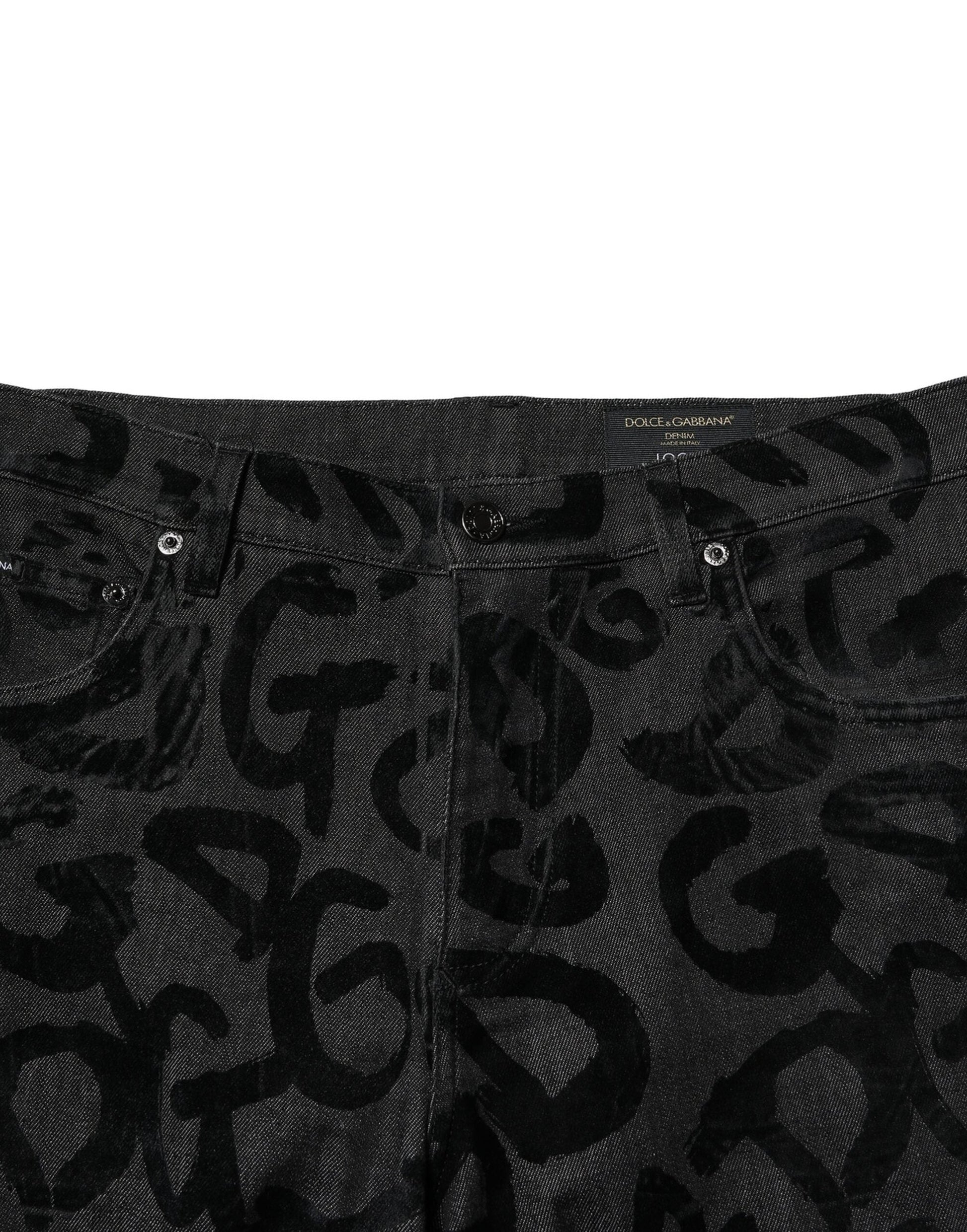 Dolce & Gabbana Gray Cotton DG Logo Straight Men Denim Jeans