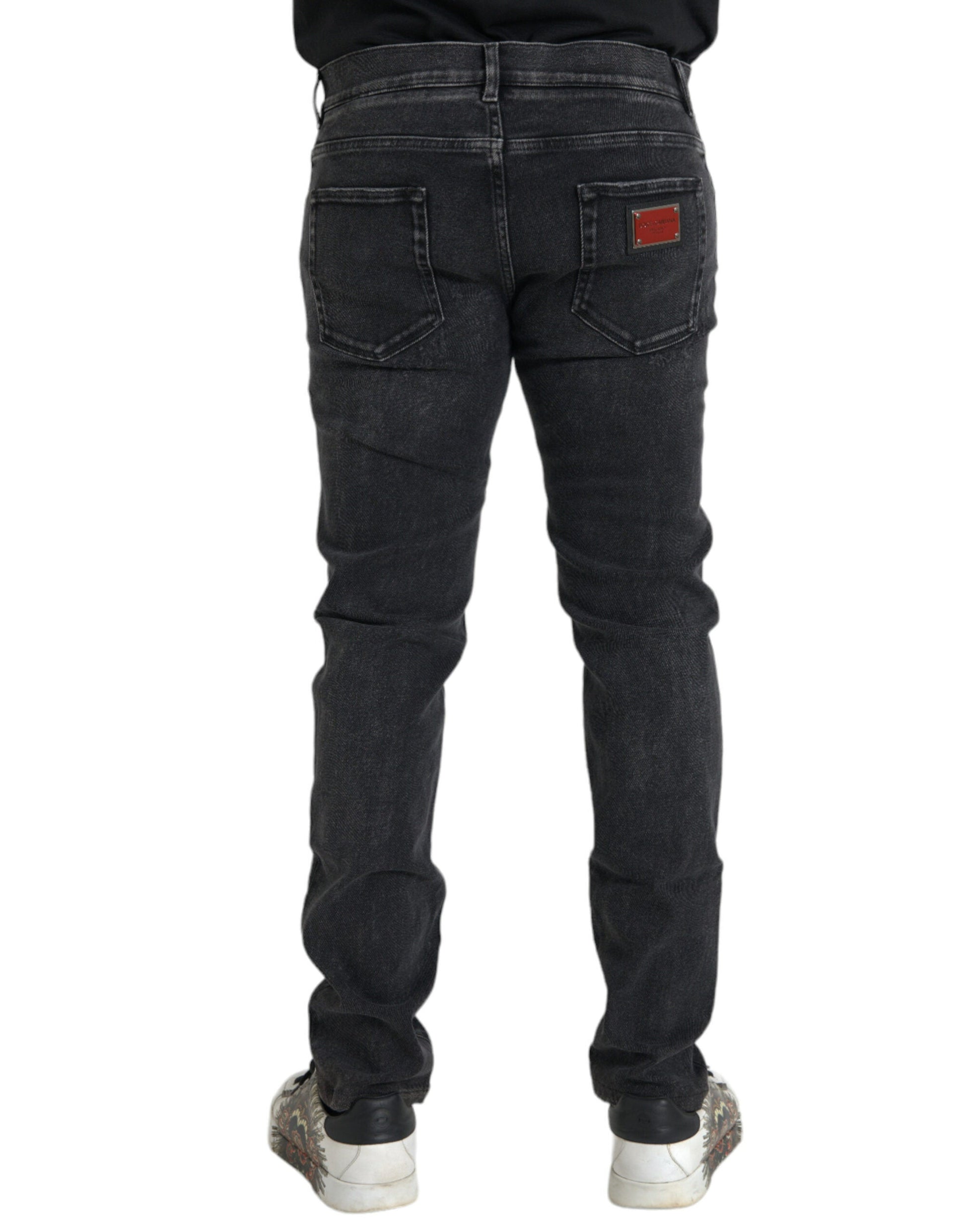 Dolce & Gabbana Gray Cotton Stretch Skinny Denim Logo Jeans
