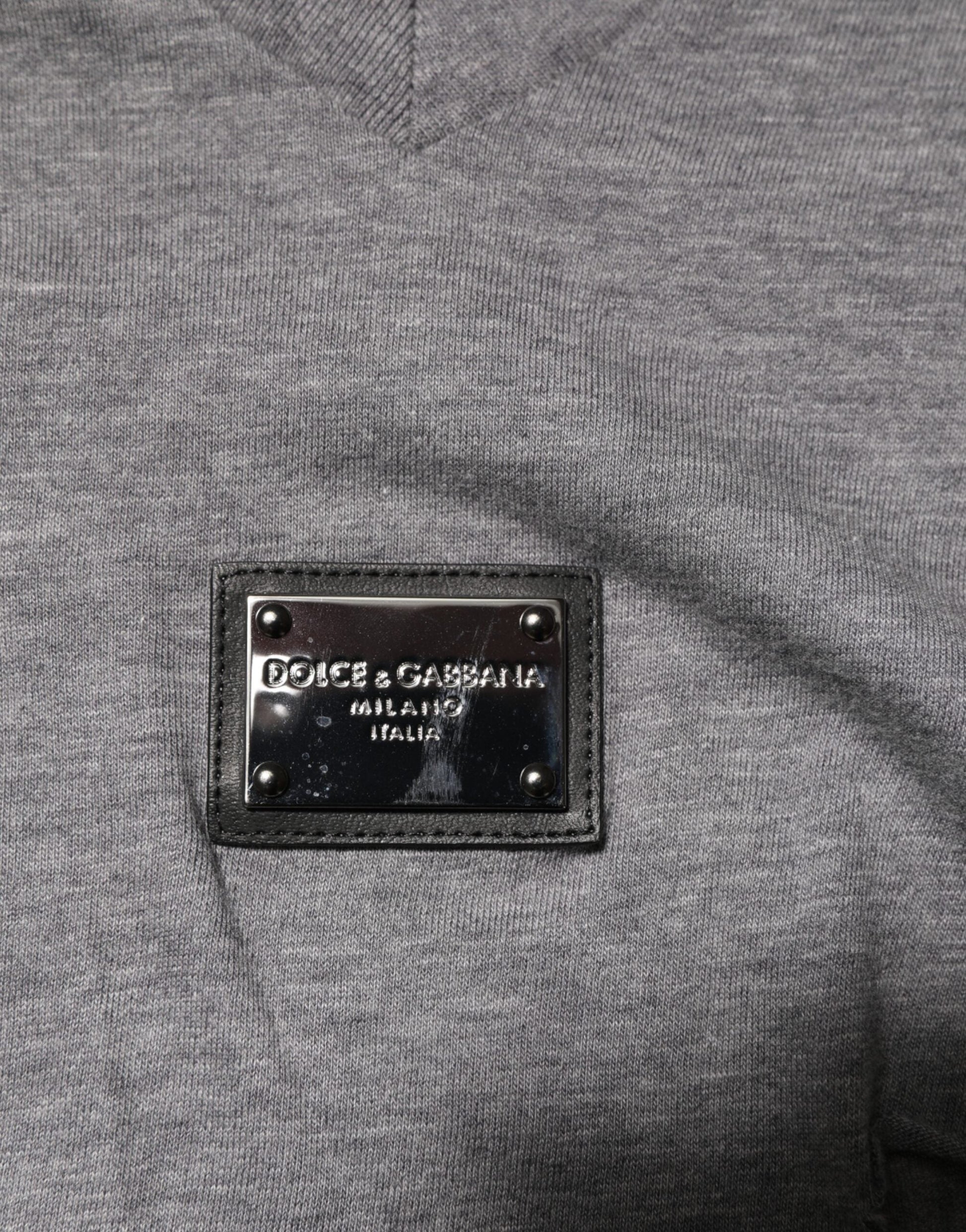 Dolce & Gabbana Gray Cotton Tattered Logo Patch Men T-shirt