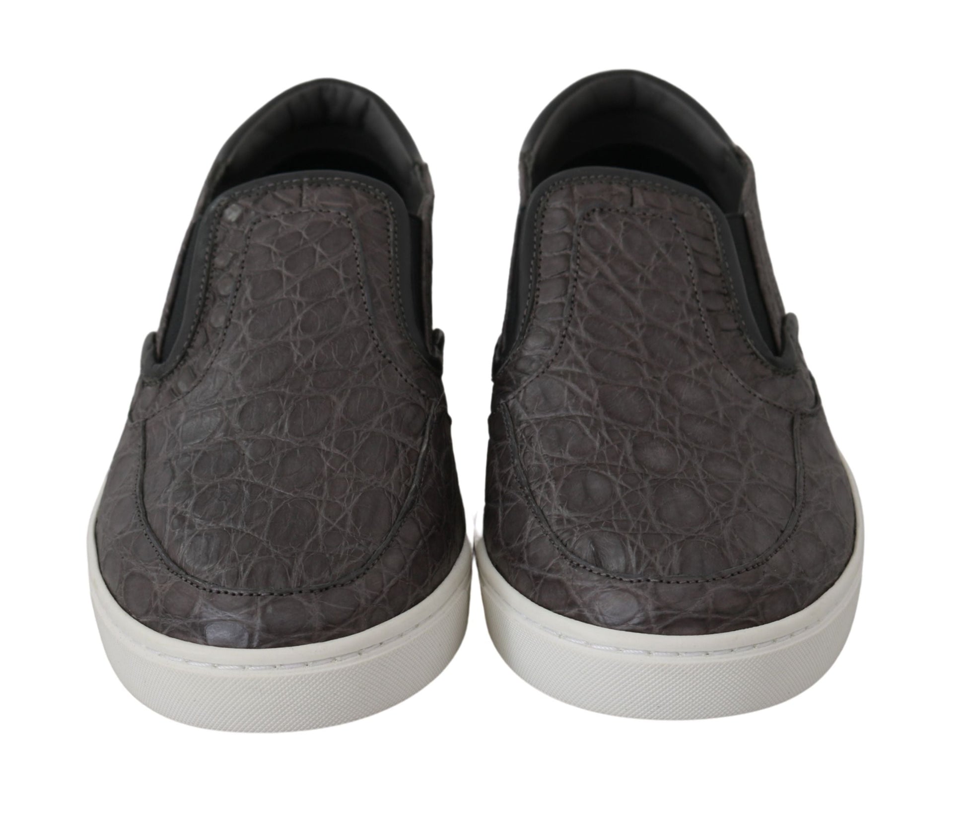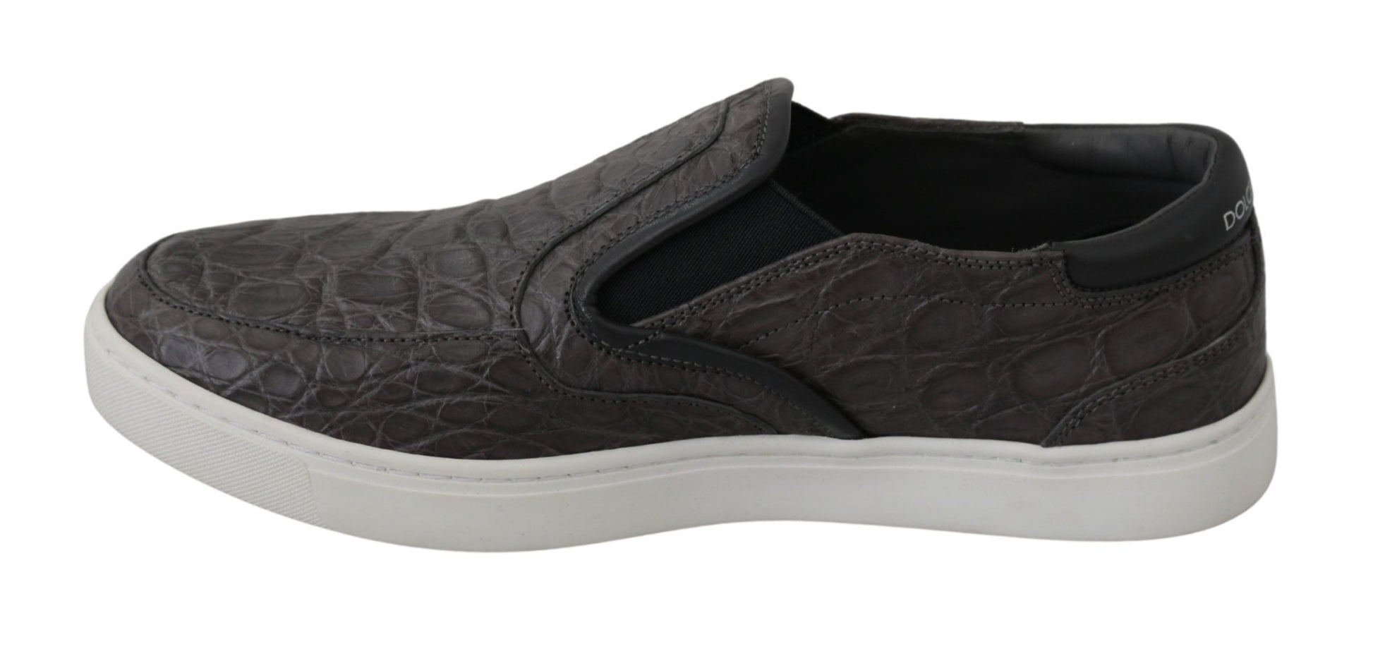 Dolce & Gabbana Gray Leather Flat Caiman Mens Loafers Shoes