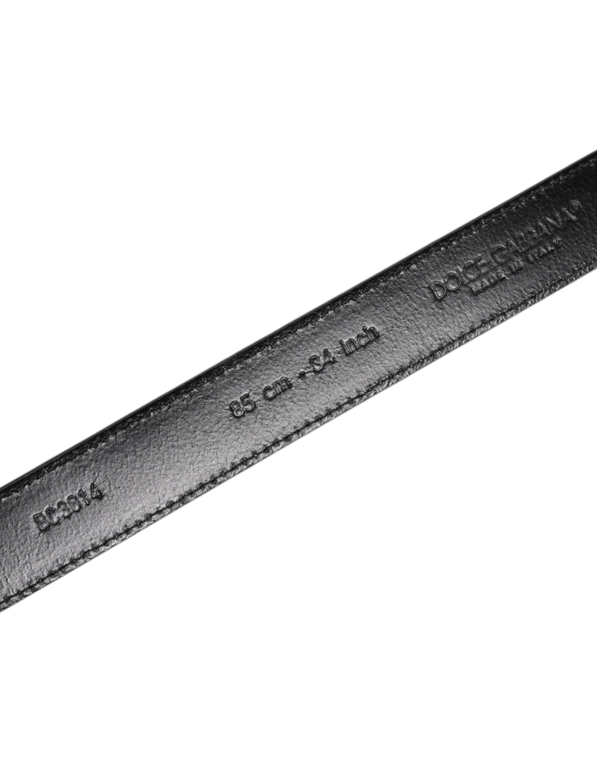 Dolce & Gabbana Gray Leather Silver Tone Metal Buckle Belt