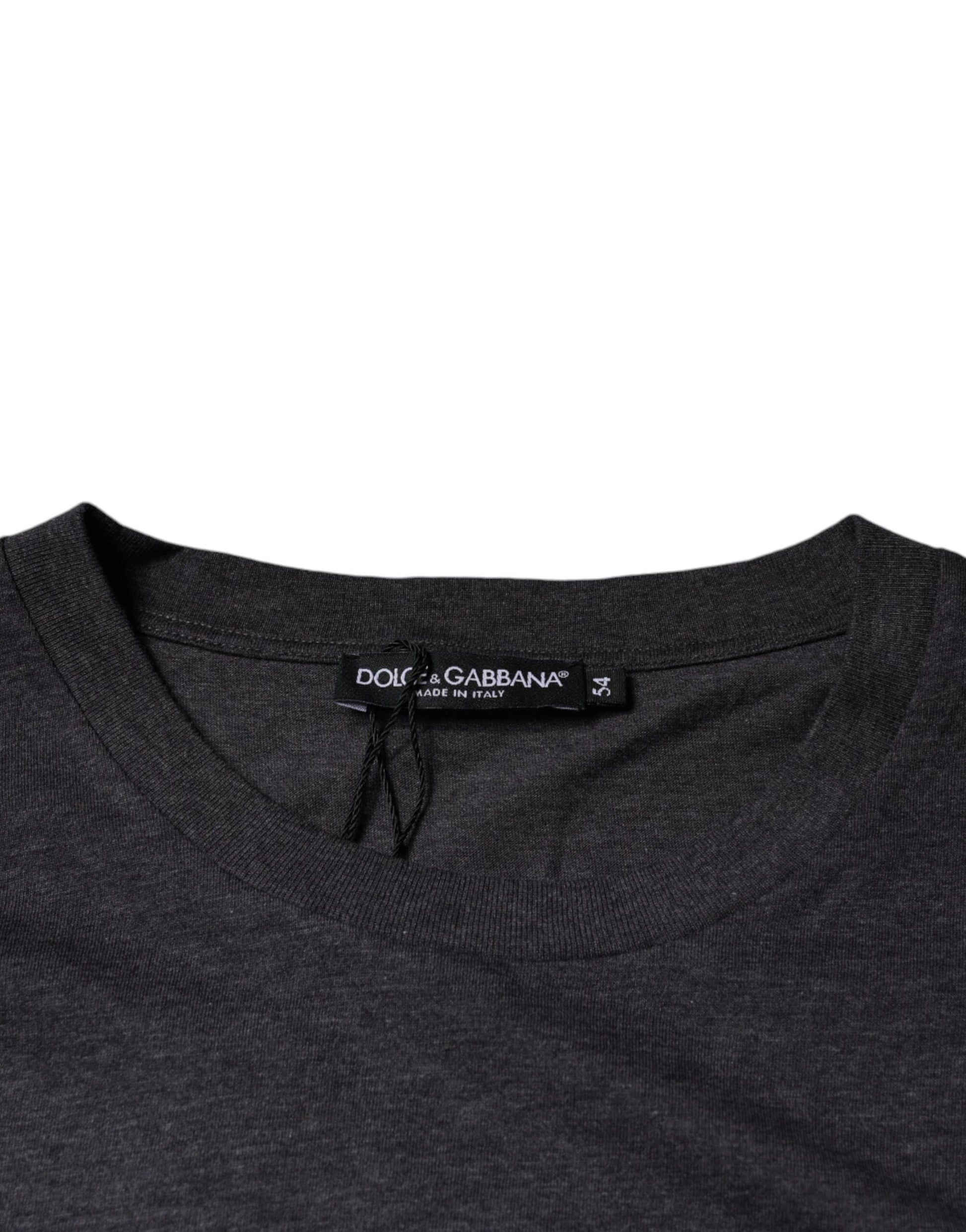 Dolce & Gabbana Gray Logo Patch Cotton Crew Neck T-shirt