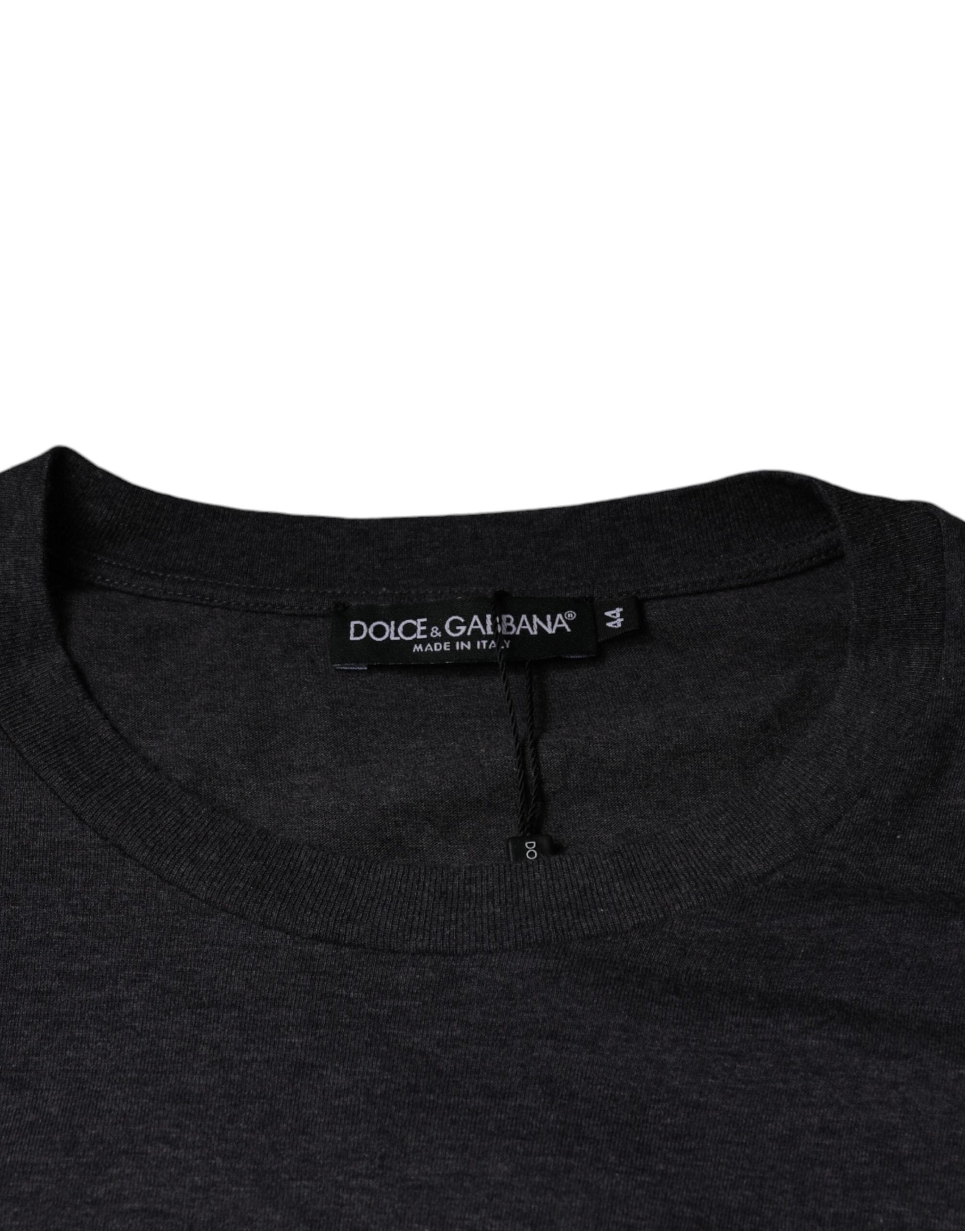 Dolce & Gabbana Gray Logo Patch Cotton Crew Neck T-shirt