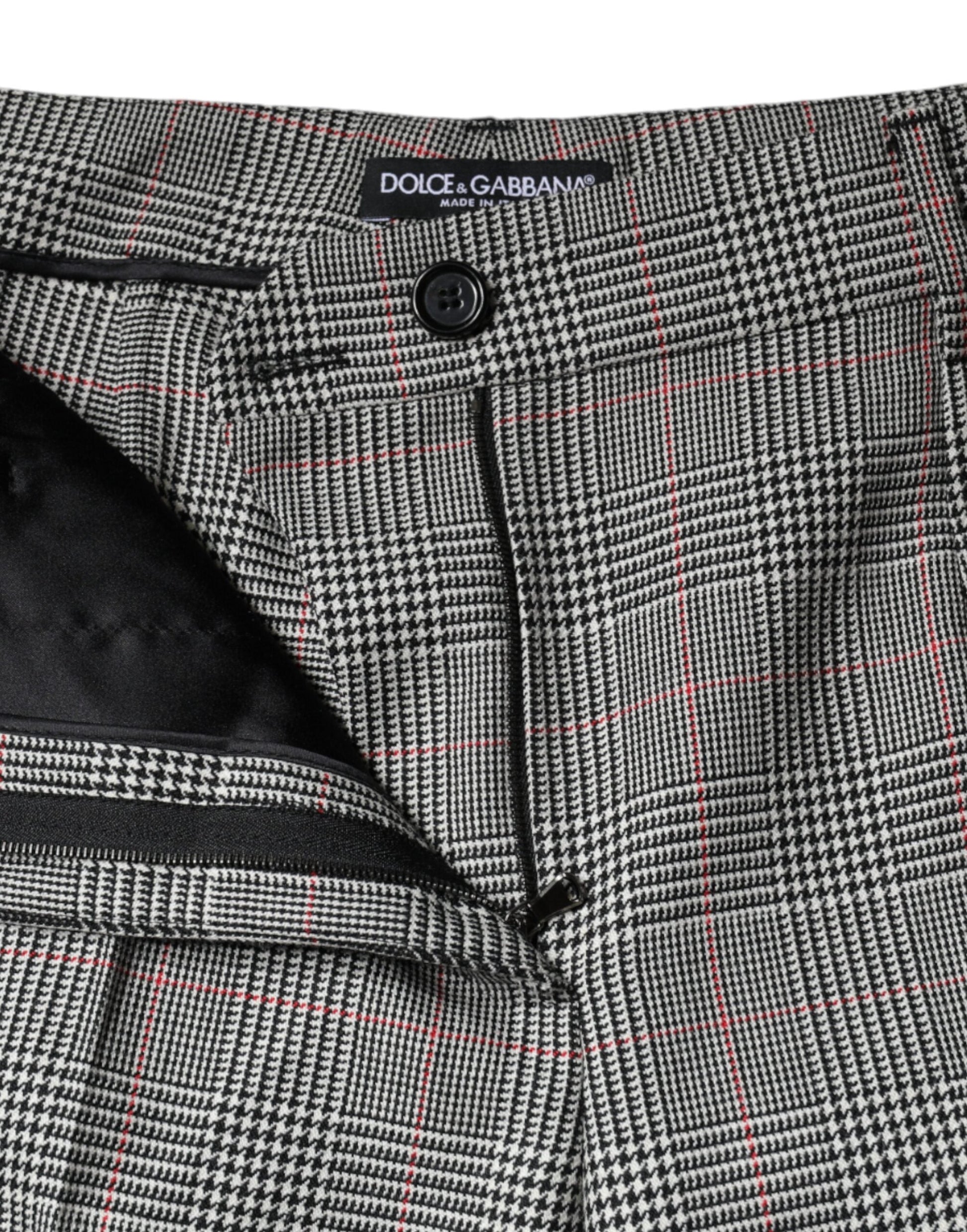 Dolce & Gabbana Gray Plaid Wool Mid Waist Women Tapered Pants