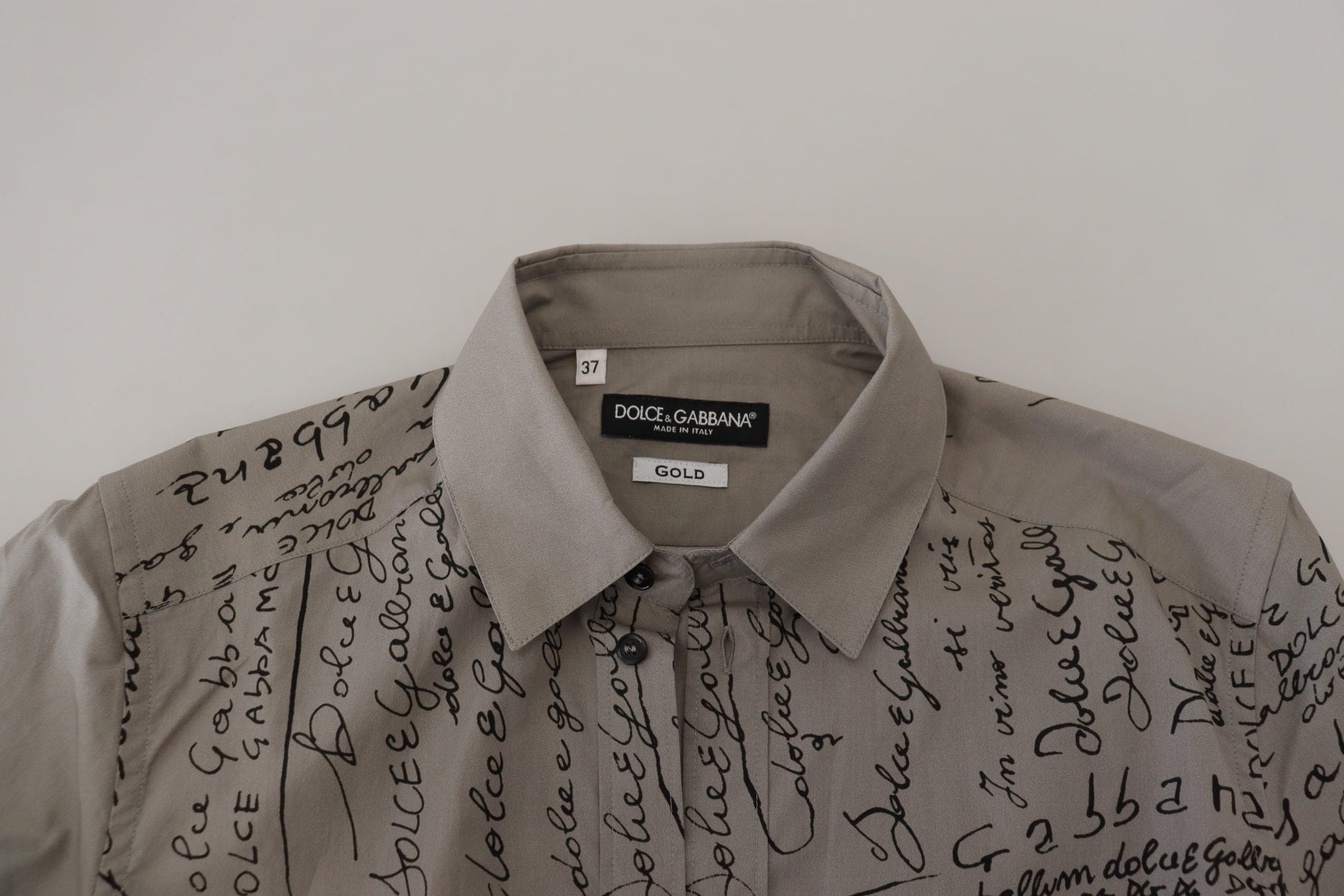 Dolce & Gabbana Gray Printed Cotton Slim Dress GOLD Shirt
