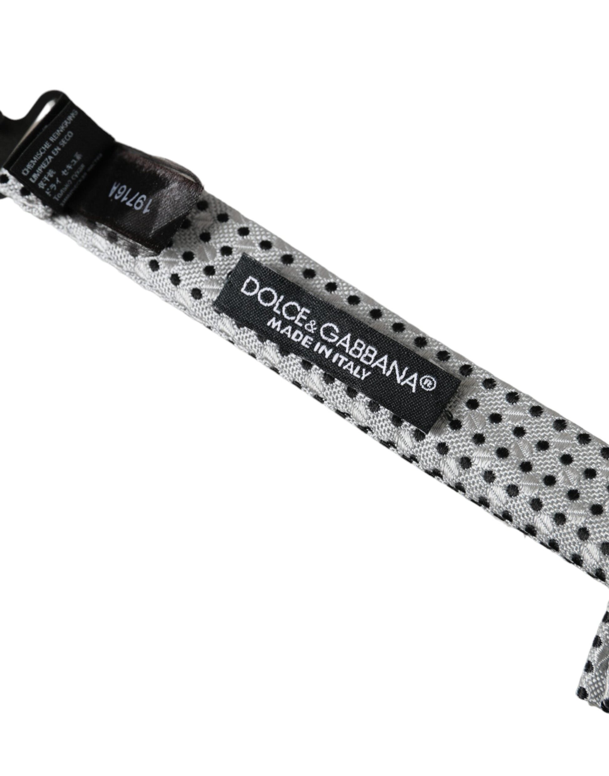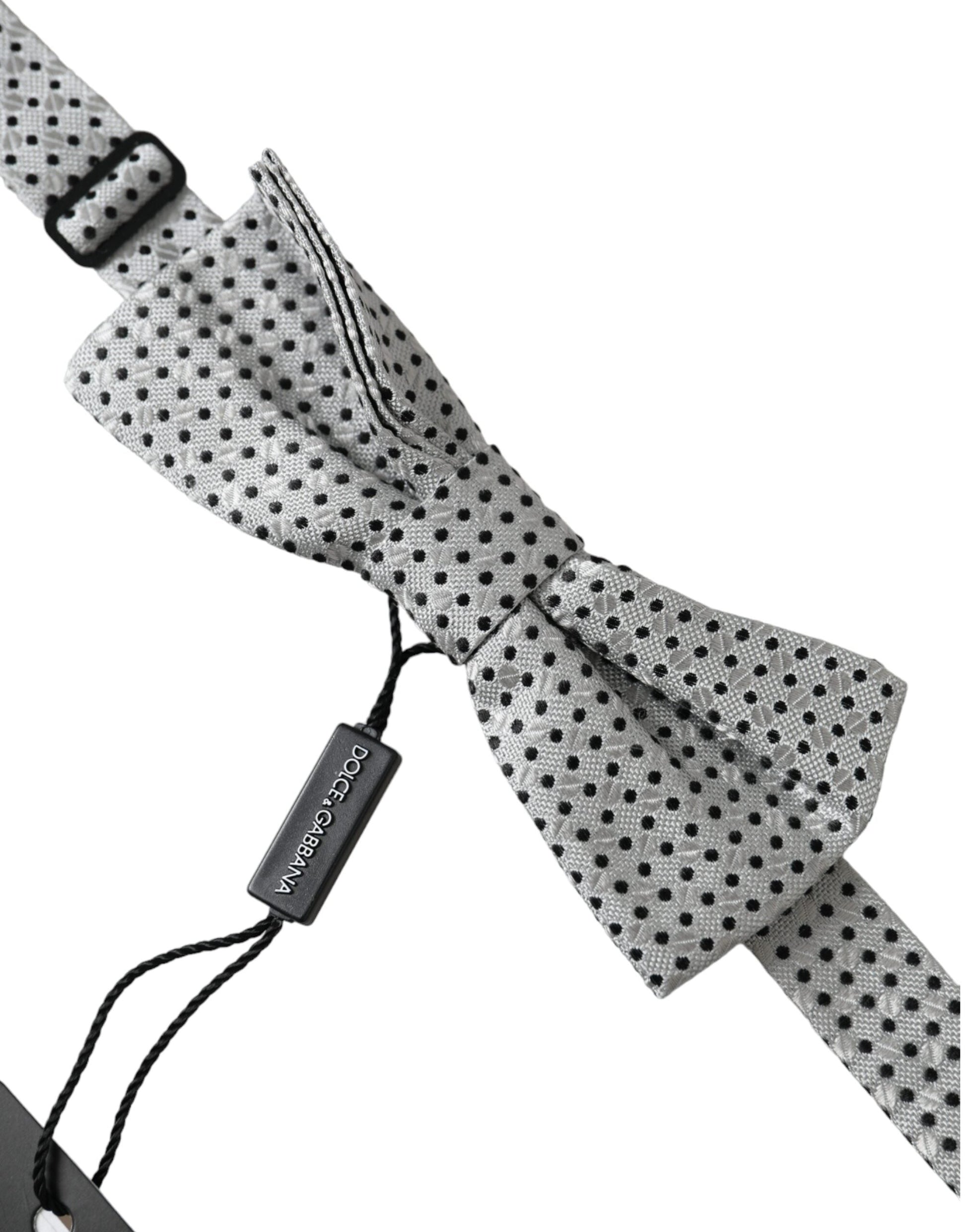 Dolce & Gabbana Gray Silk Polka Dot Adjustable Neck Men Papillon Bow Tie