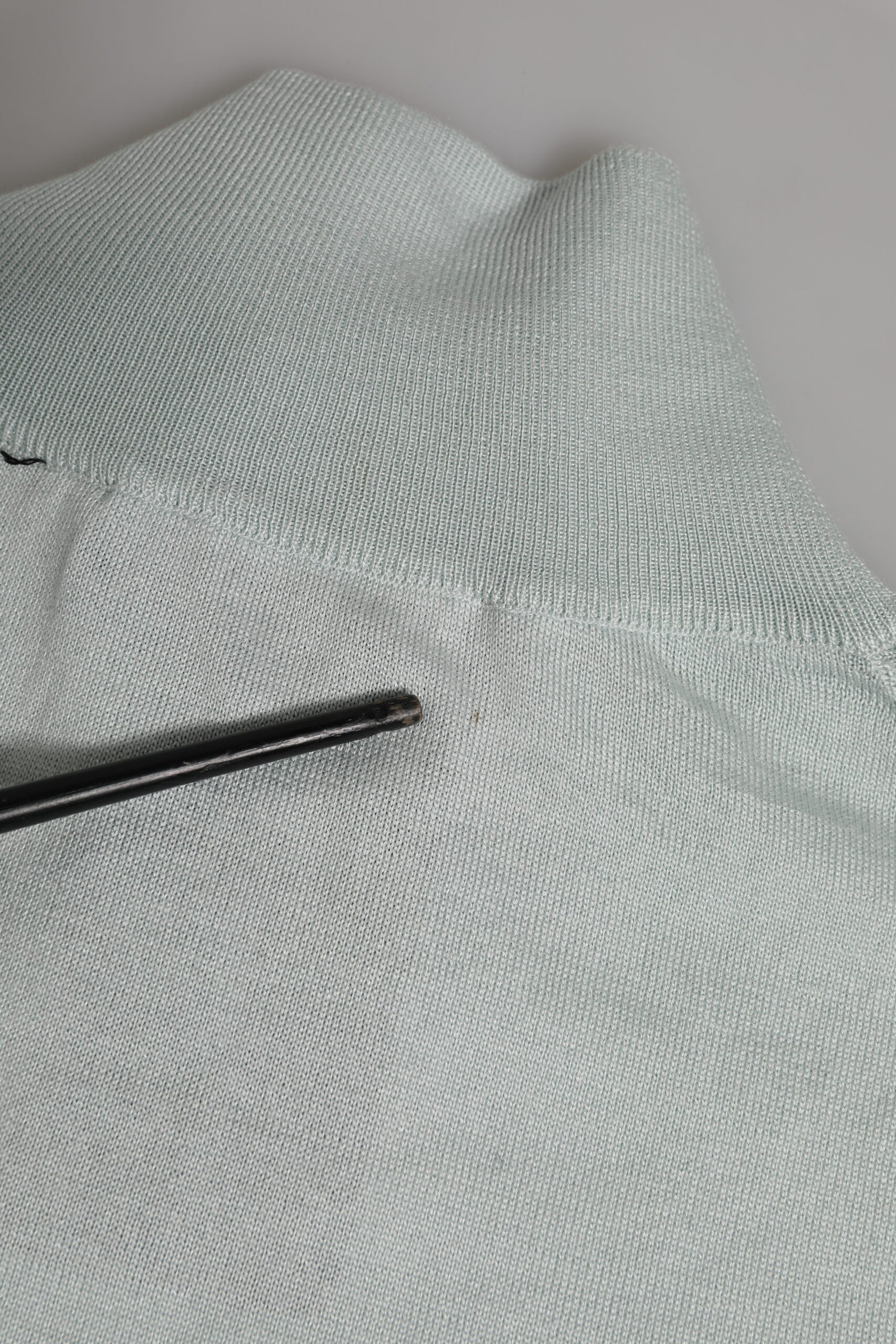 pullover is crafted in a soft gray fabric for a comfortable yet refined look. It features a classic turtleneck, 3/4 sleeves, and a streamlined silhouette, making it perfect for layering or wearing on its own for effortless everyday elegance.