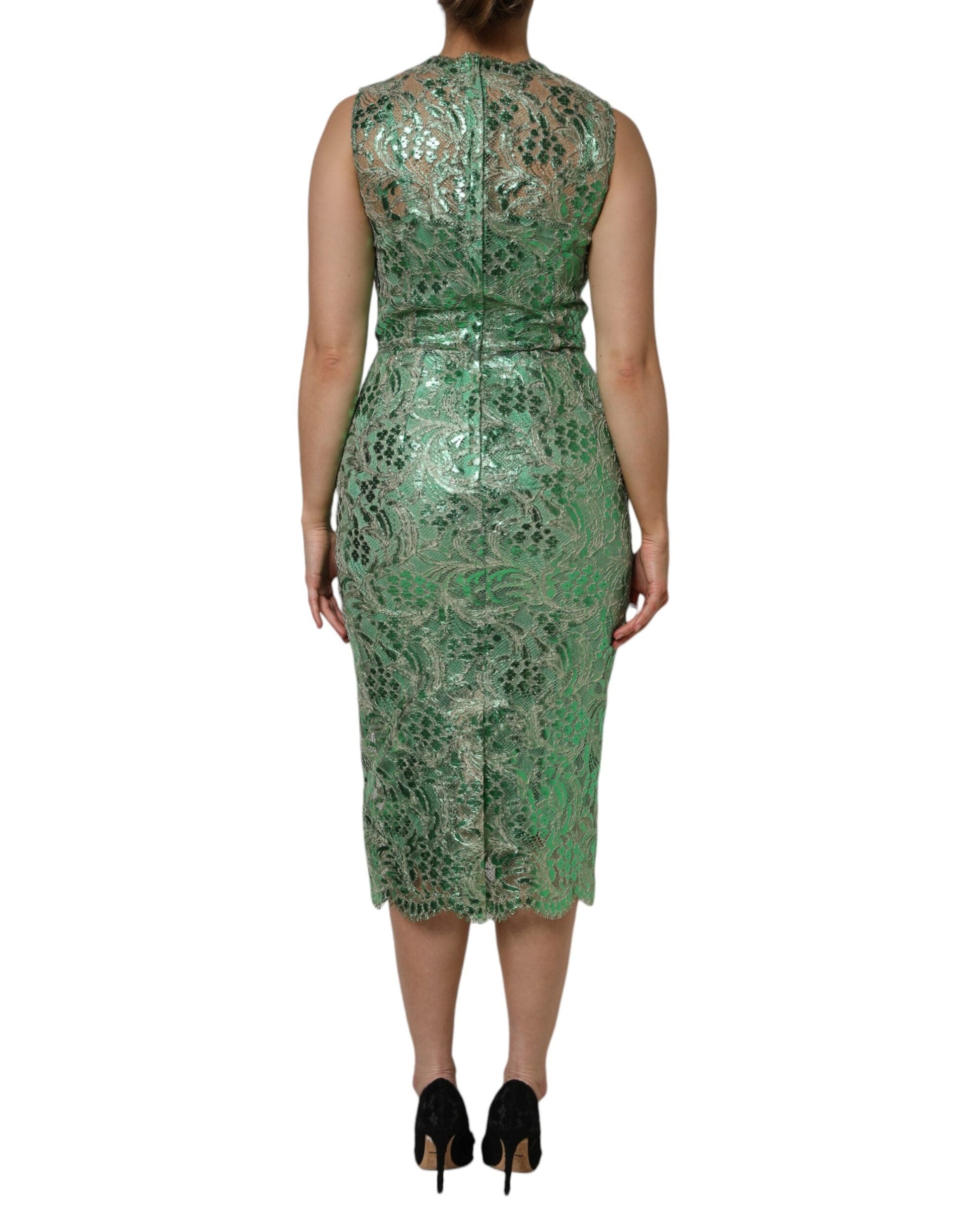 Dolce & Gabbana Green Cotton Floral Lace Sheath Midi Dress