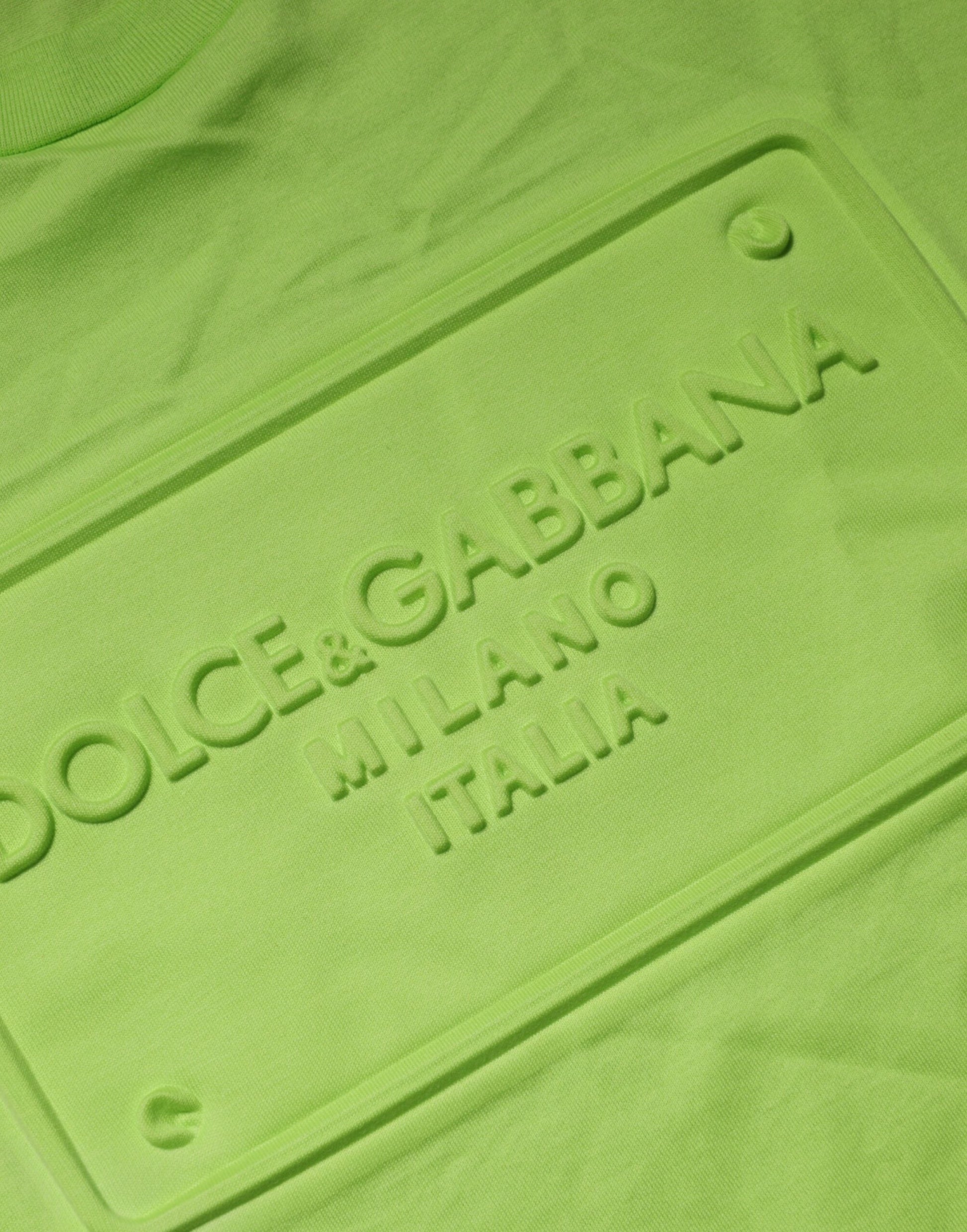 Dolce & Gabbana Green Embossed Logo Cotton Crew Neck T-shirt