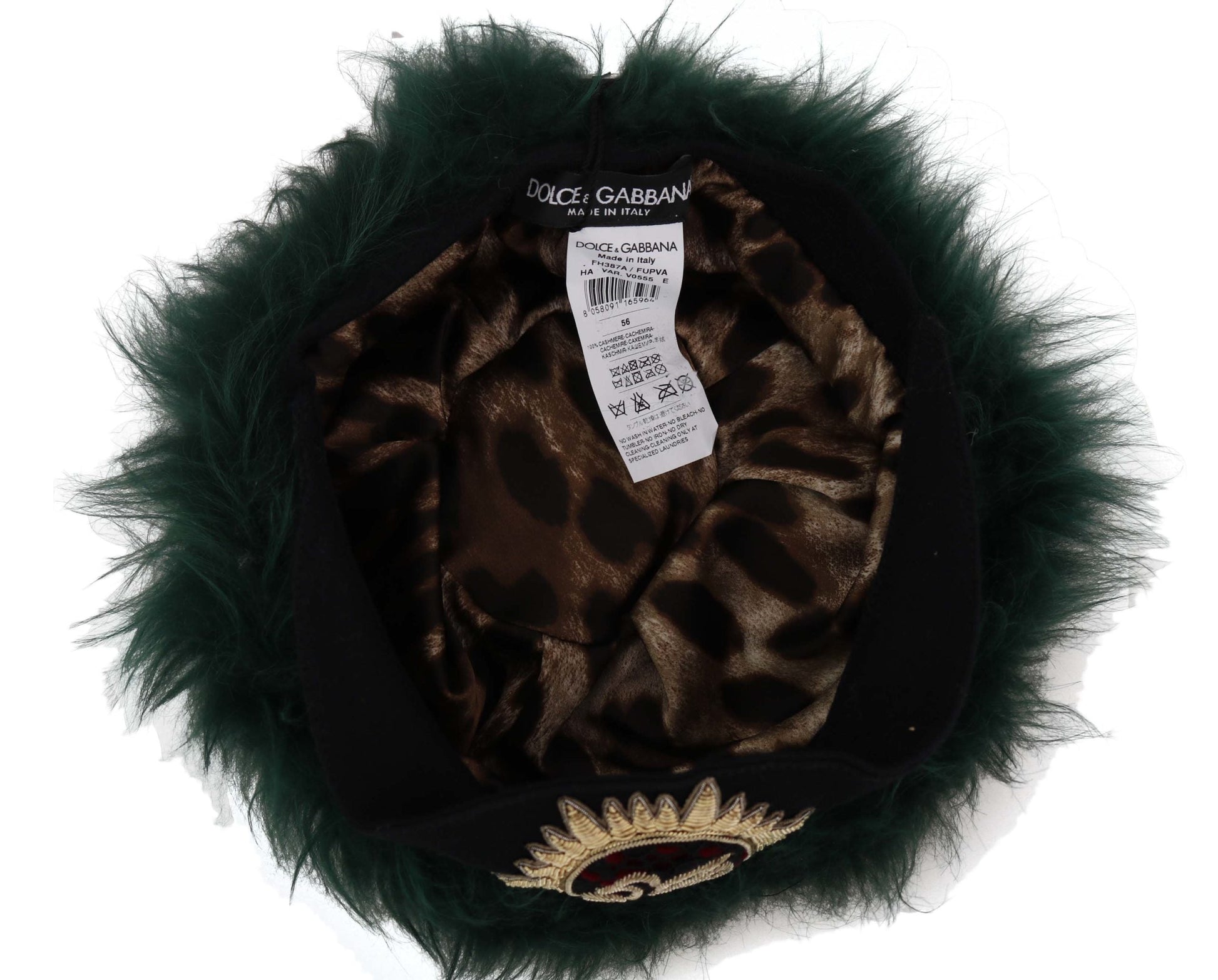 Dolce & Gabbana Green Fur DG Logo Embroidered Cloche Hat
