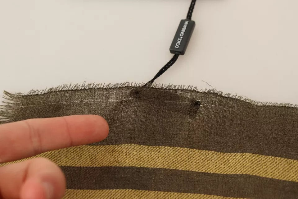 Dolce & Gabbana Green Striped Cashmere Wrap Fringes Scarf