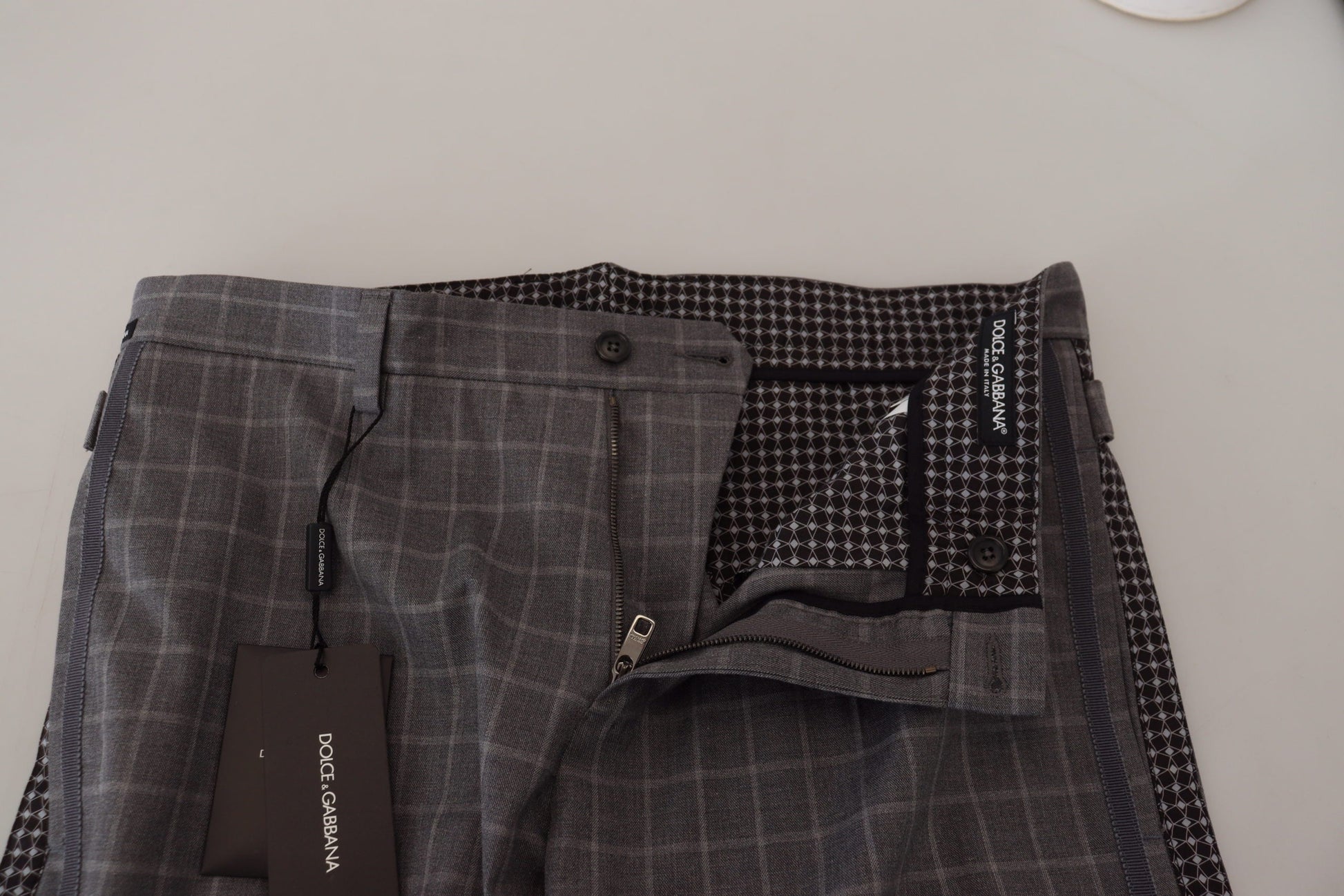 Dolce & Gabbana Grey Cotton Checkered Chino Pants