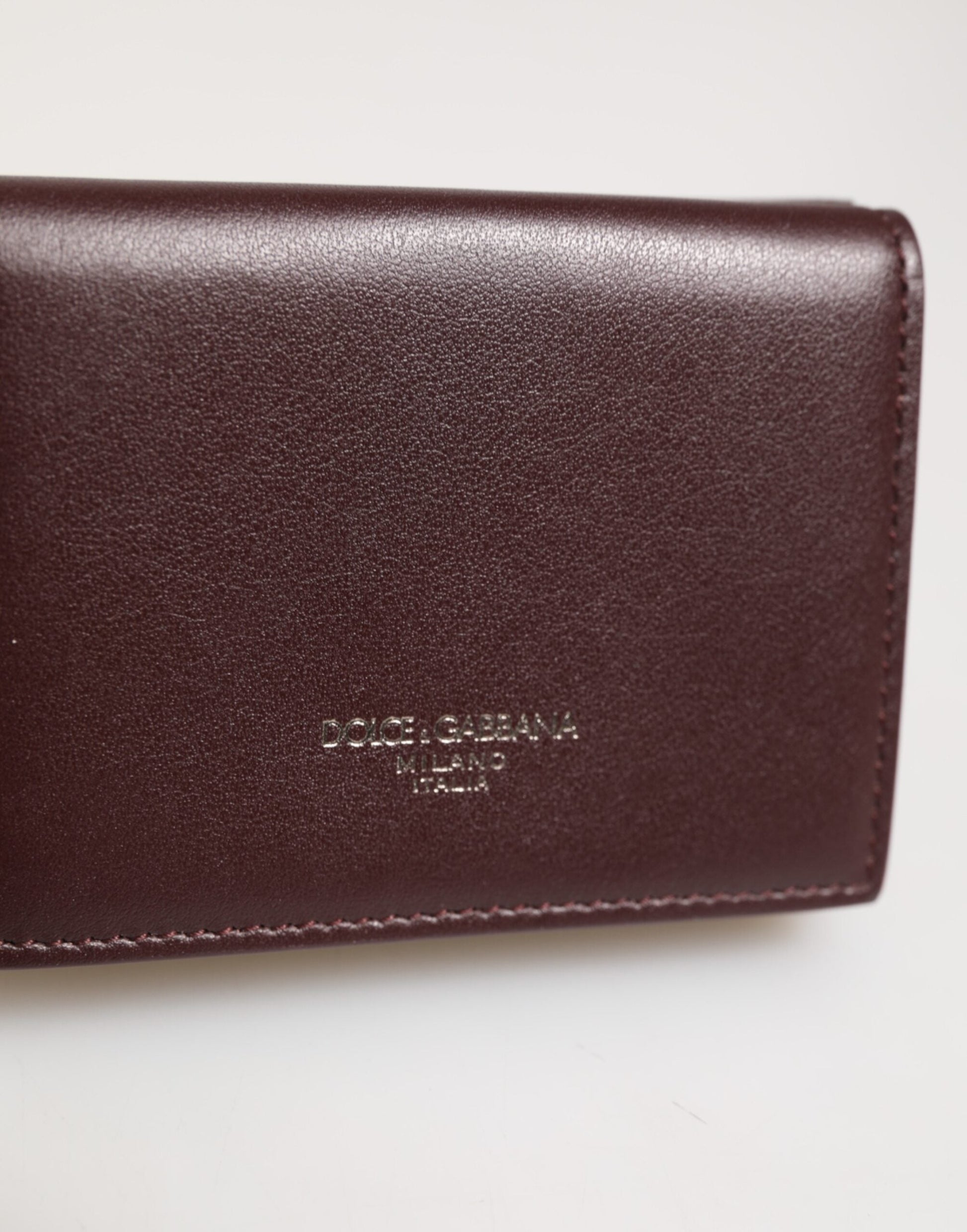 Dolce & Gabbana Leather Embossed Logo Trifold Men Card Holder Dark Brown