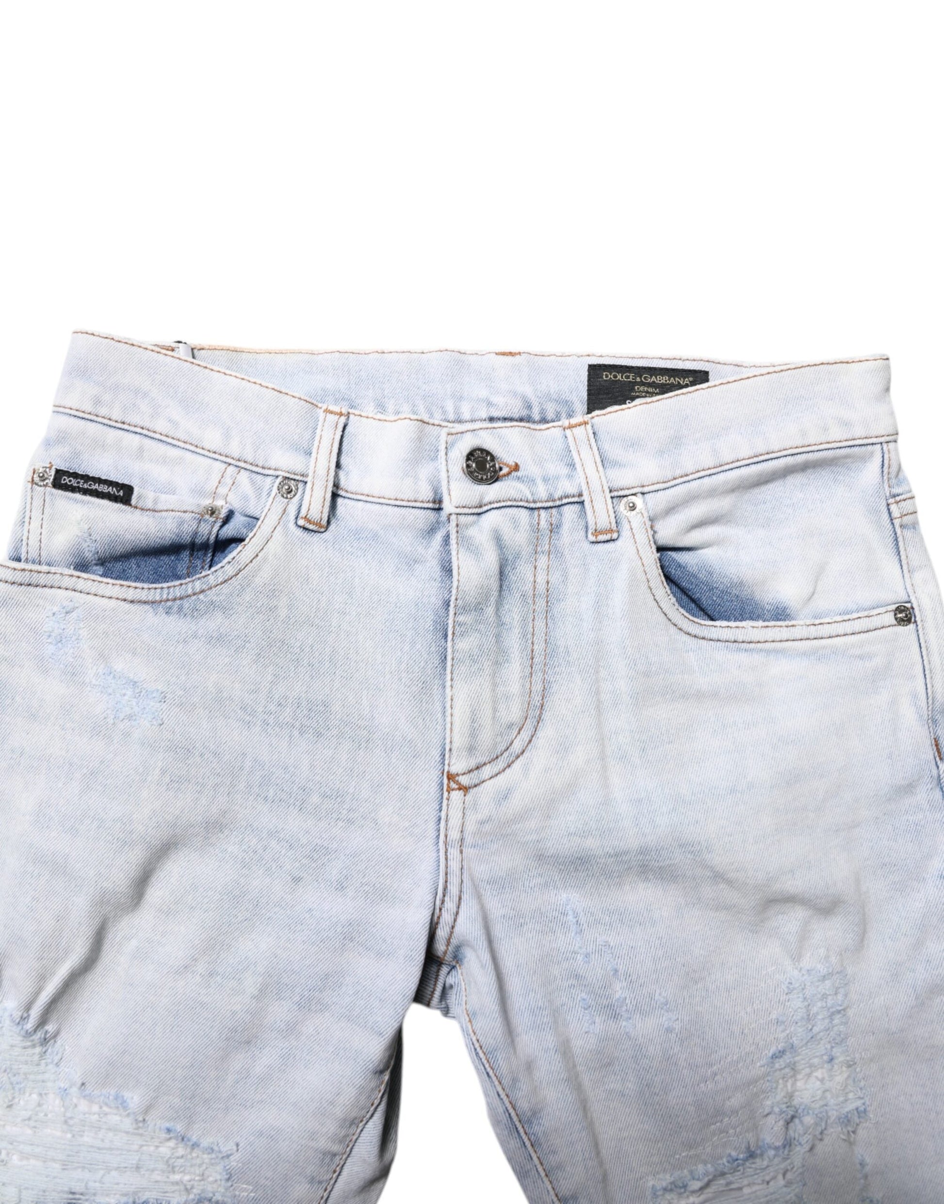 Dolce & Gabbana Light Blue Tattered Skinny Denim Jeans