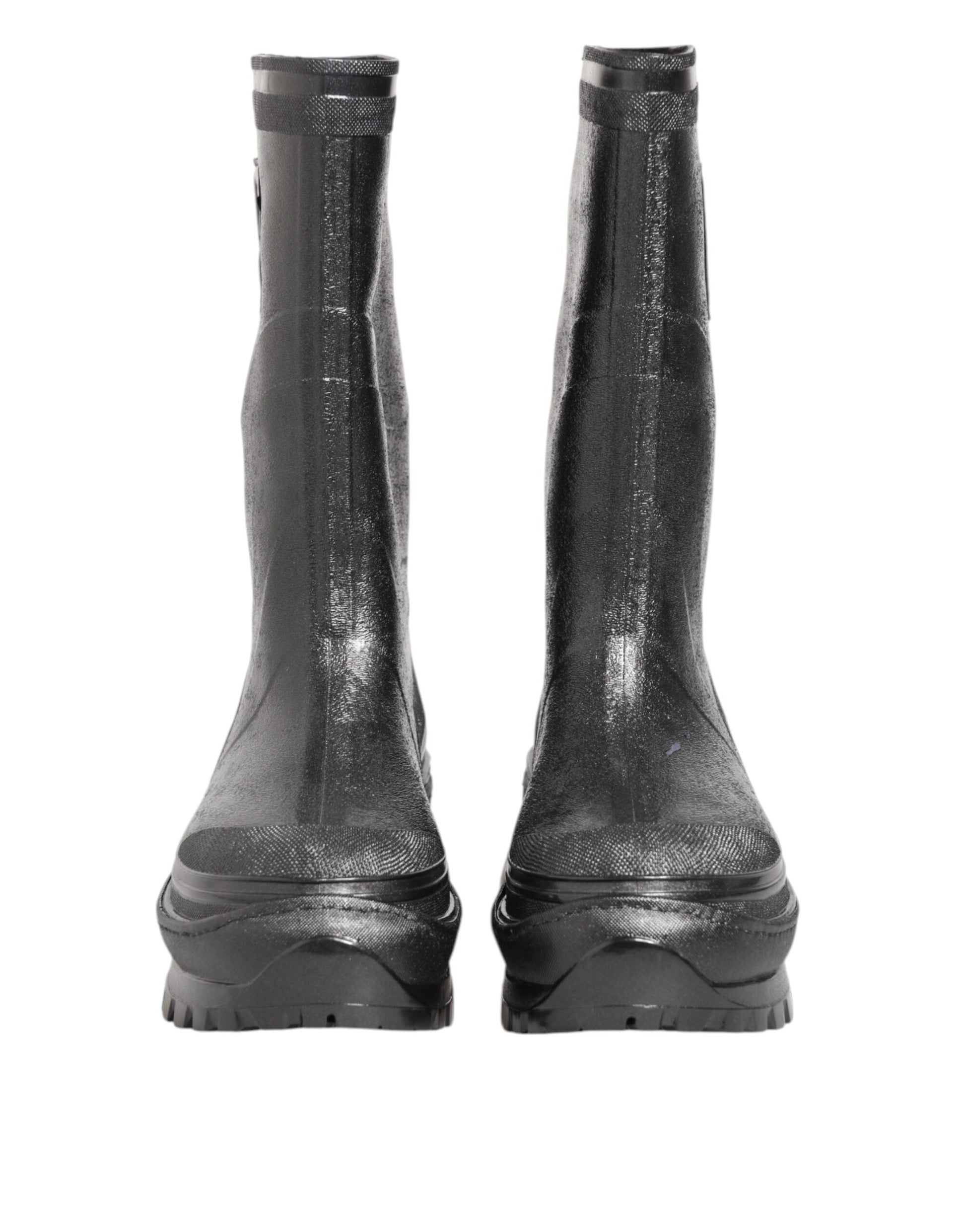 Dolce & Gabbana Metallic Black Pull On Rain Boots Shoes