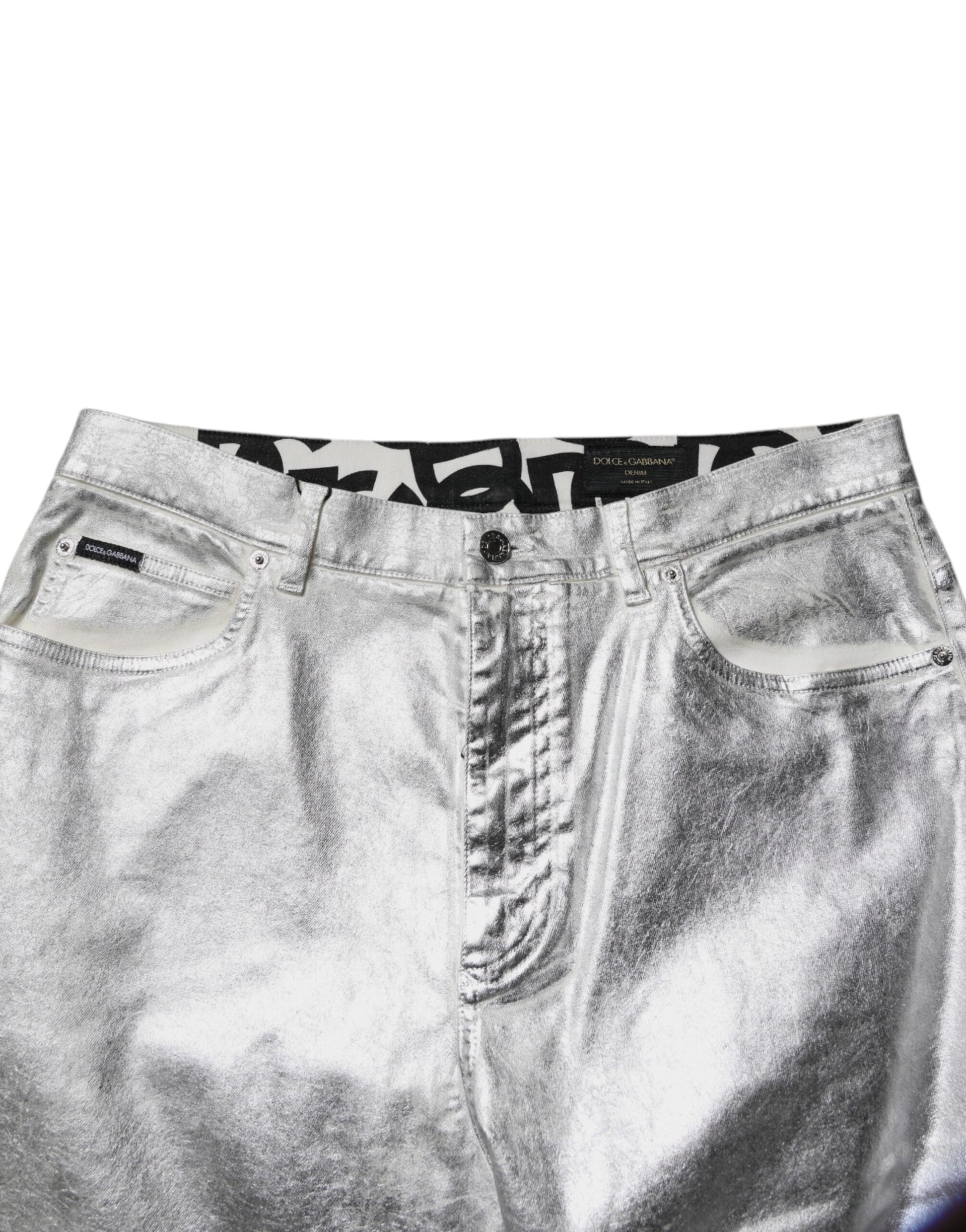 Dolce & Gabbana Metallic Silver Cotton Straight Denim Jeans