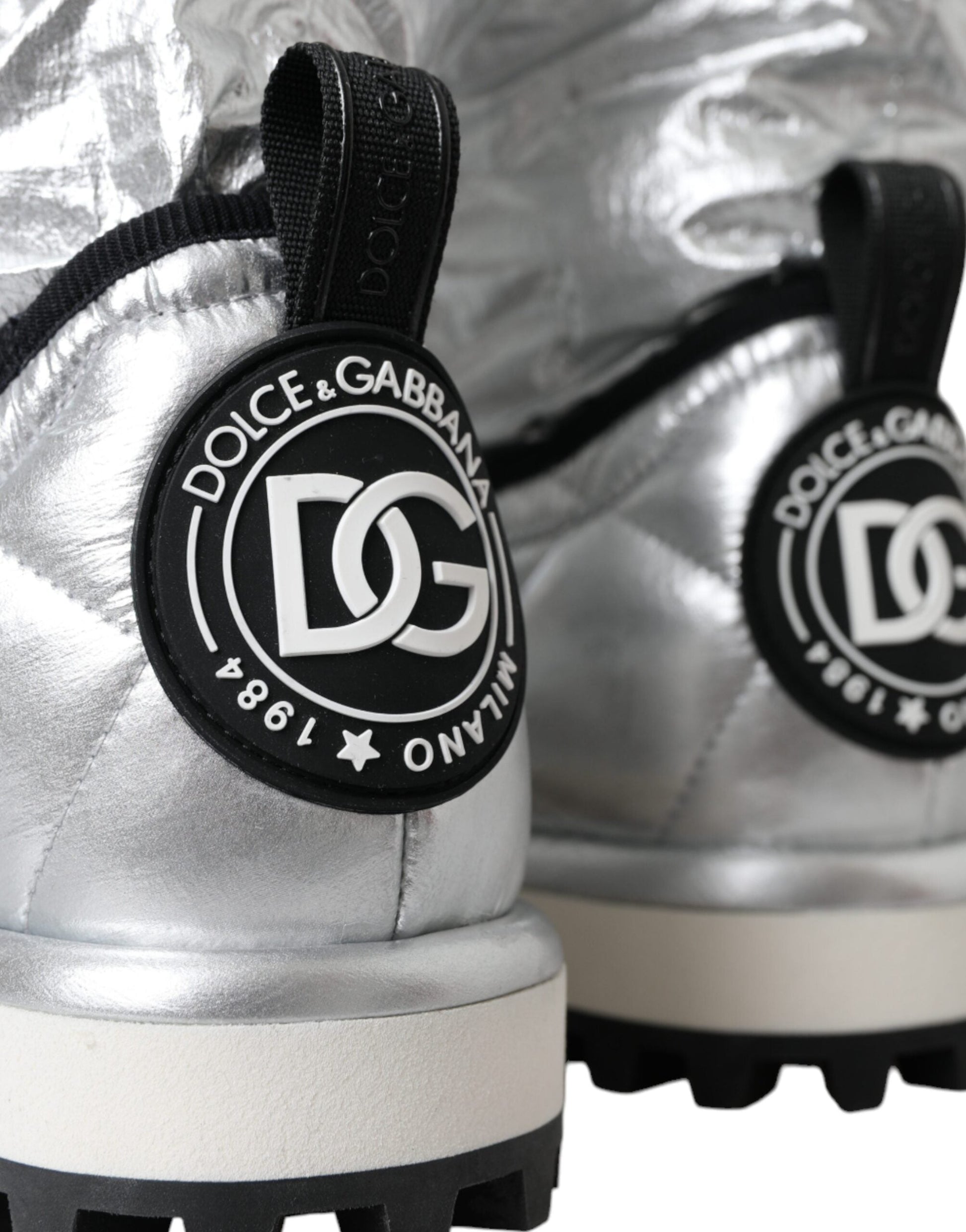 Dolce & Gabbana Metallic Silver Quilted Logo Patch Boot Shoes