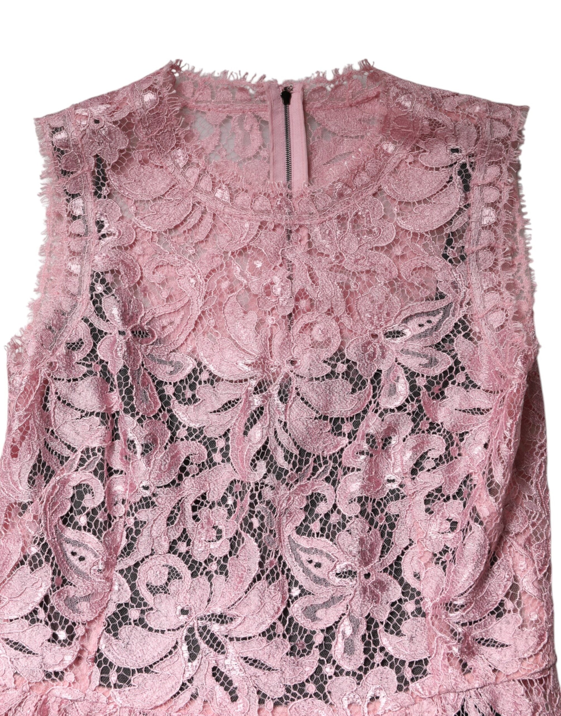 Dolce & Gabbana Pink Floral Lace Sleeveless Sheath Dress