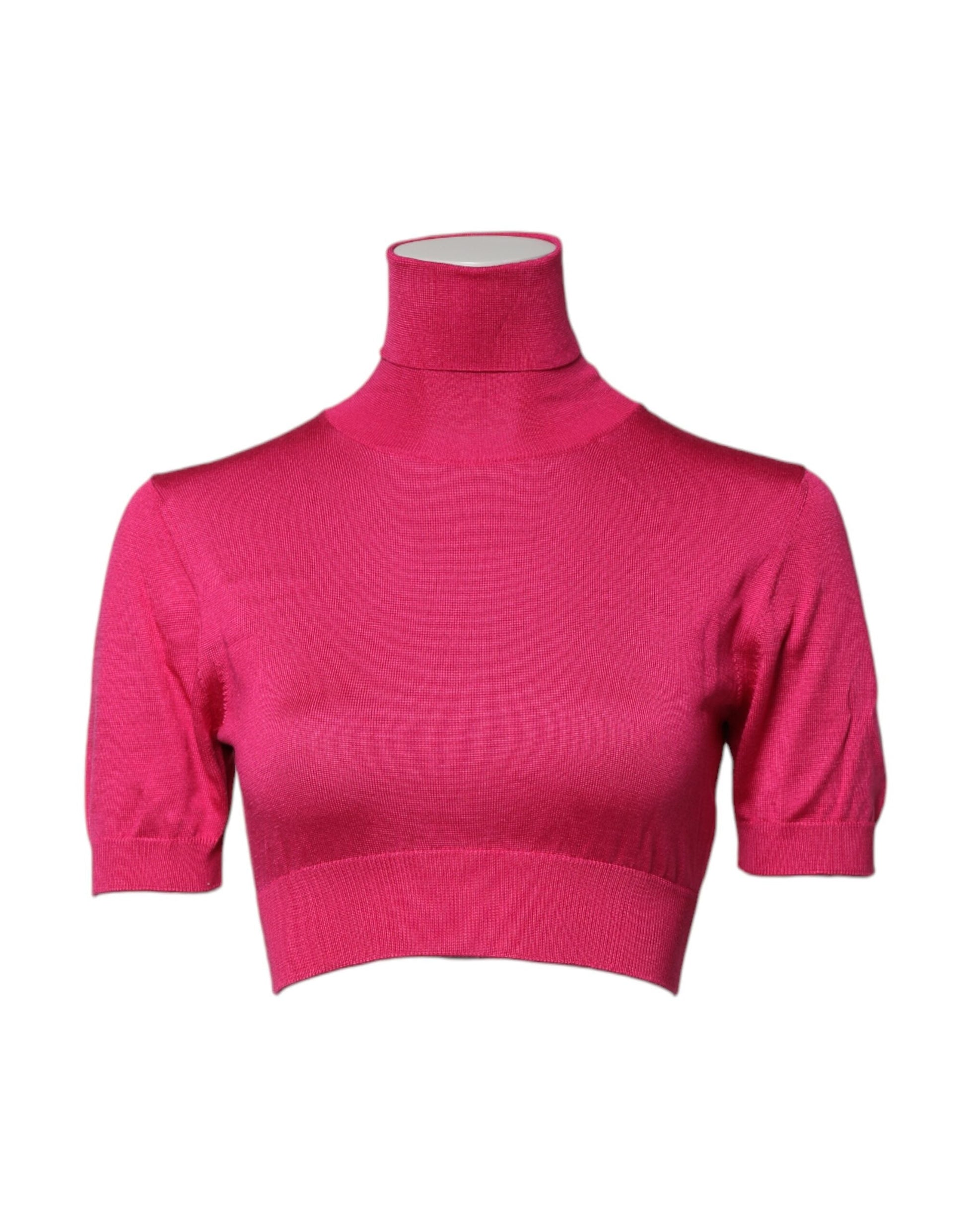 Dolce & Gabbana Pink Silk Knitted Turtleneck Cropped Top