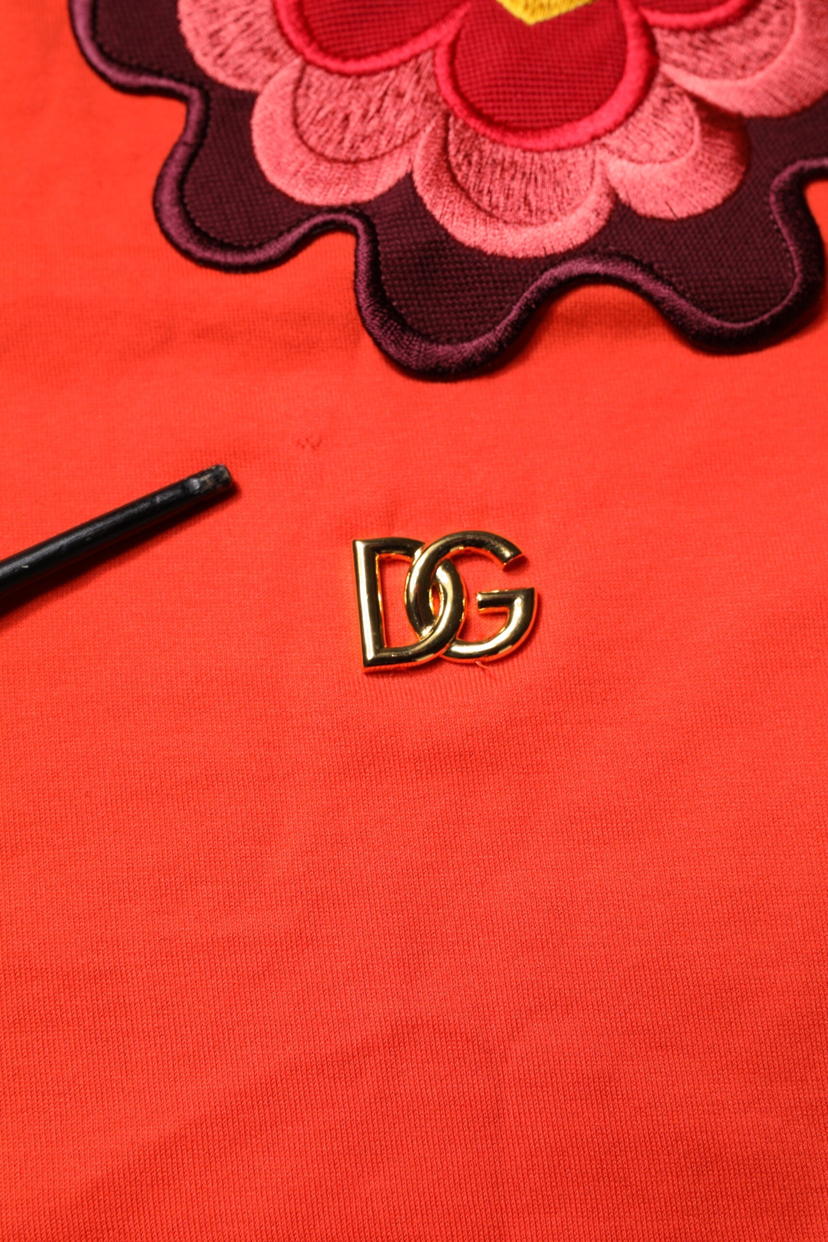 Dolce & Gabbana Red Floral Embroidery Cotton Crew Neck T-shirt