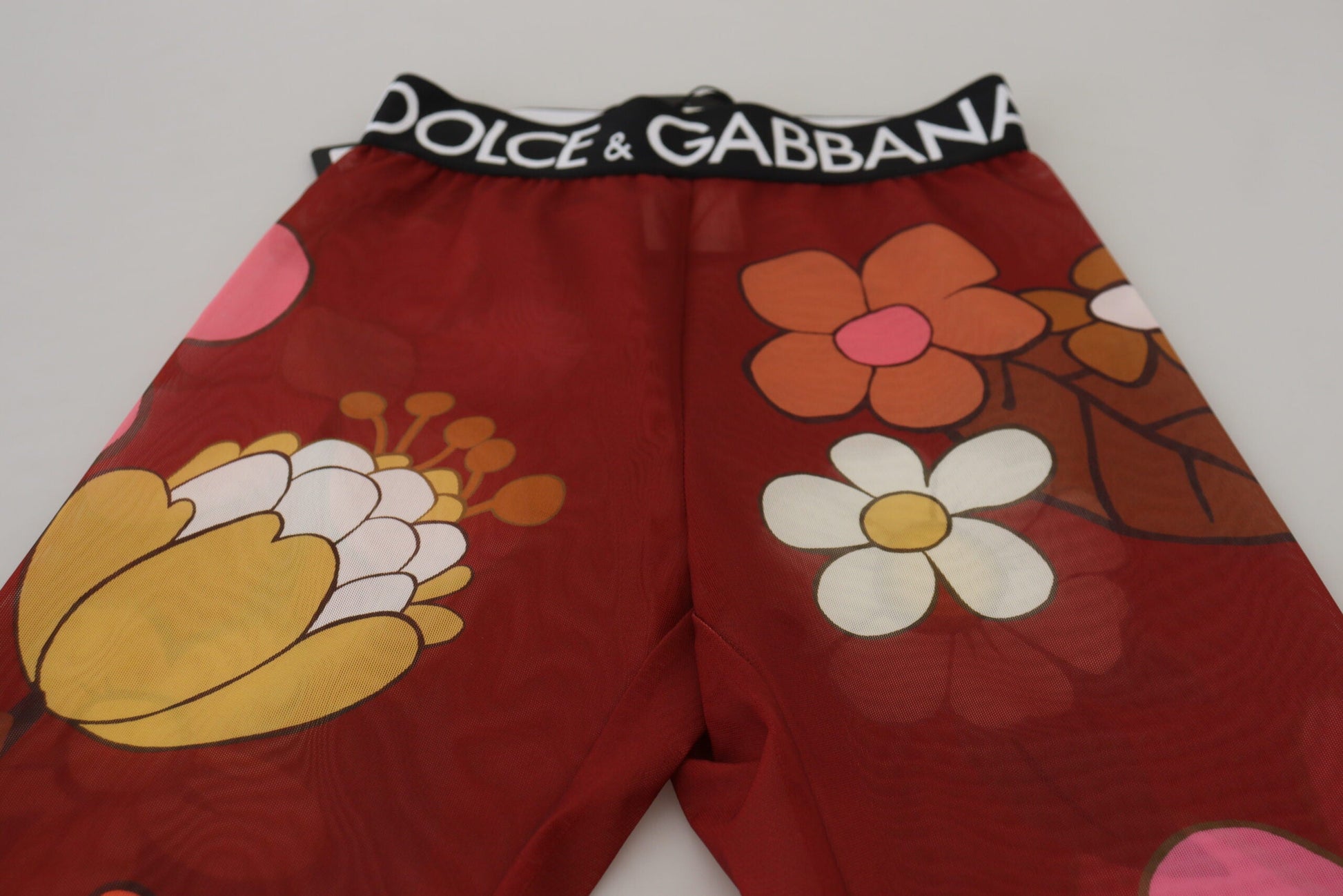 Dolce & Gabbana Red Floral Leggings Stretch Waist Pants