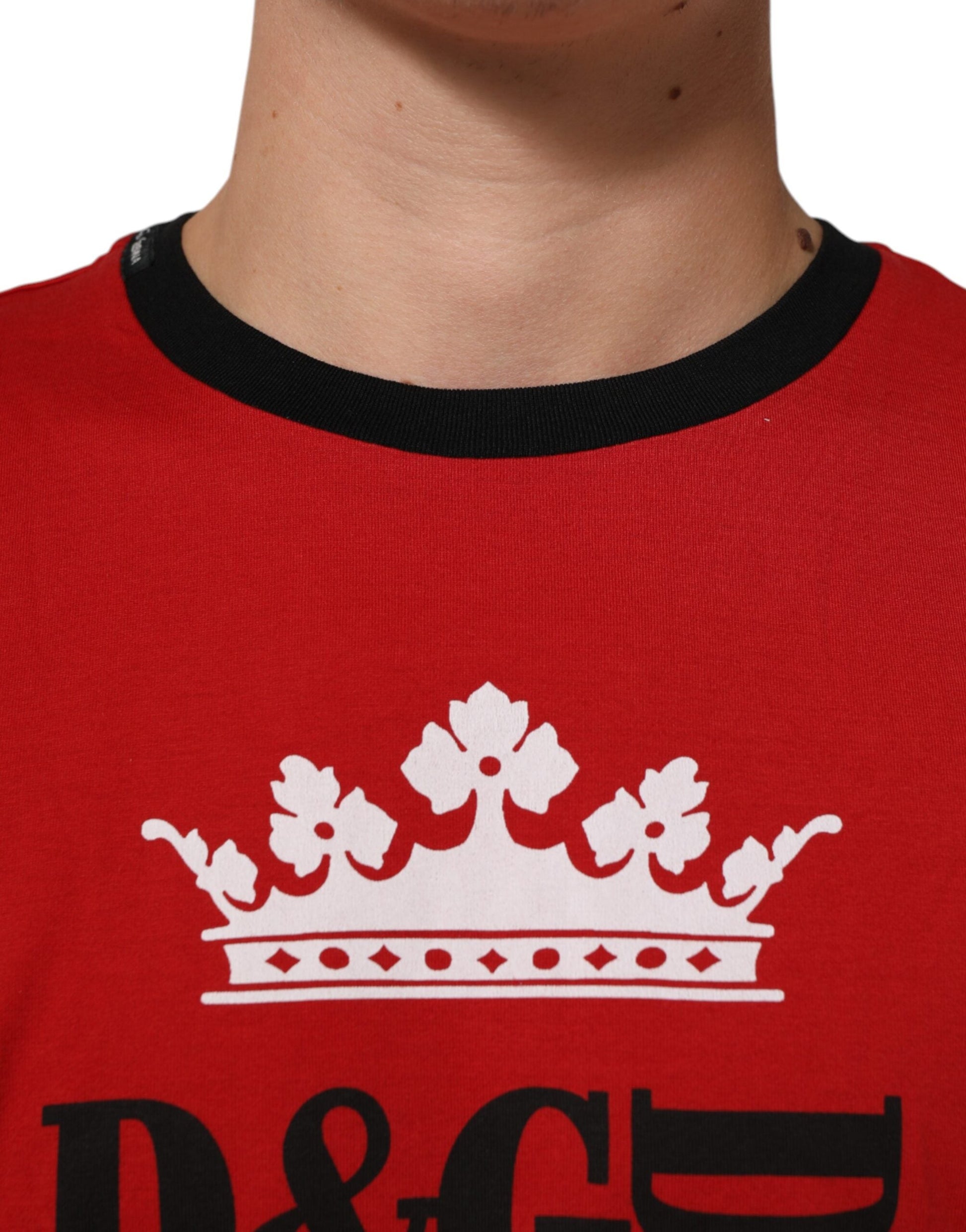 Dolce & Gabbana Red Logo Crown Cotton Short Sleeves T-shirt