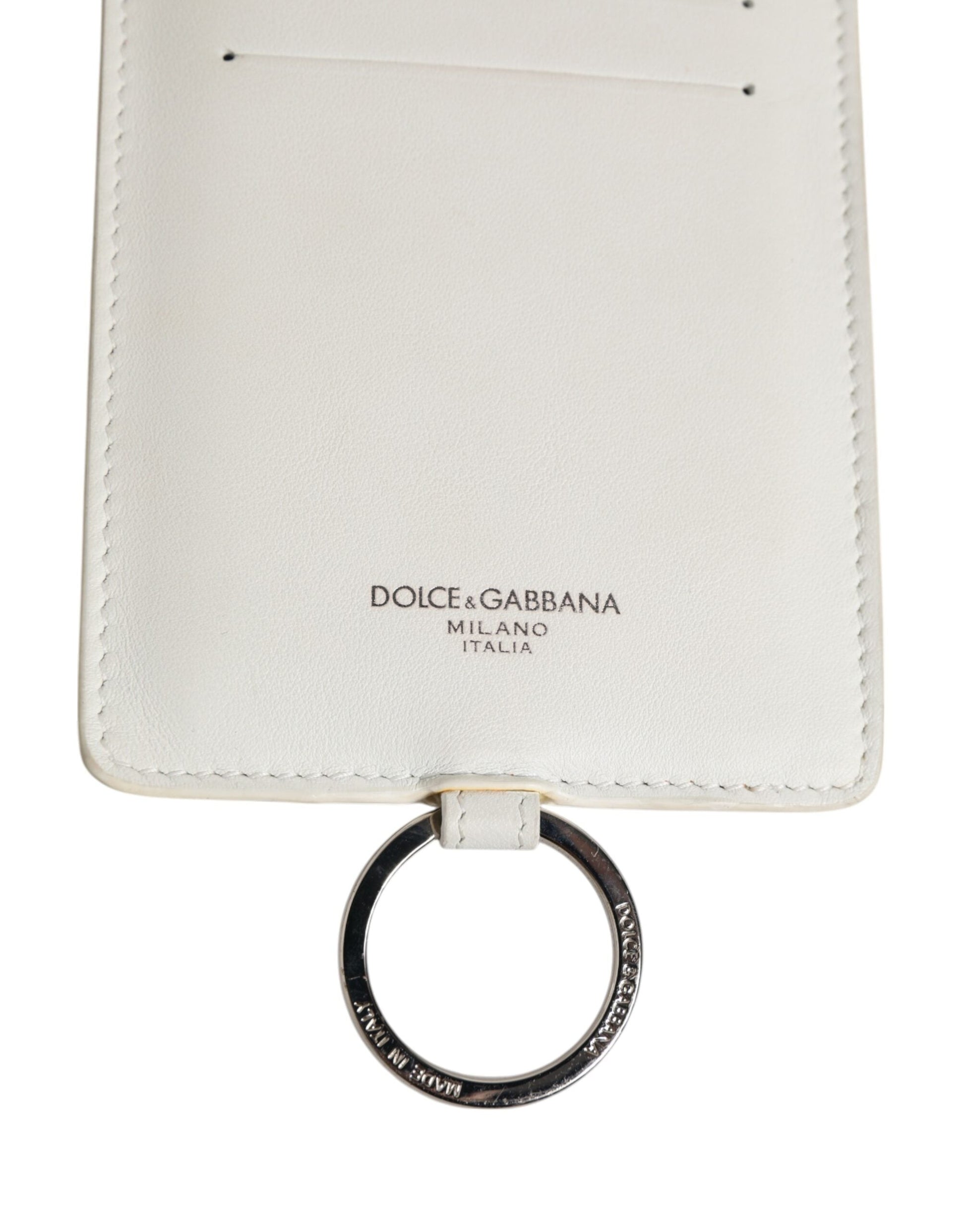 Dolce & Gabbana White Calf Leather Lanyard Logo Card Holder Men Wallet