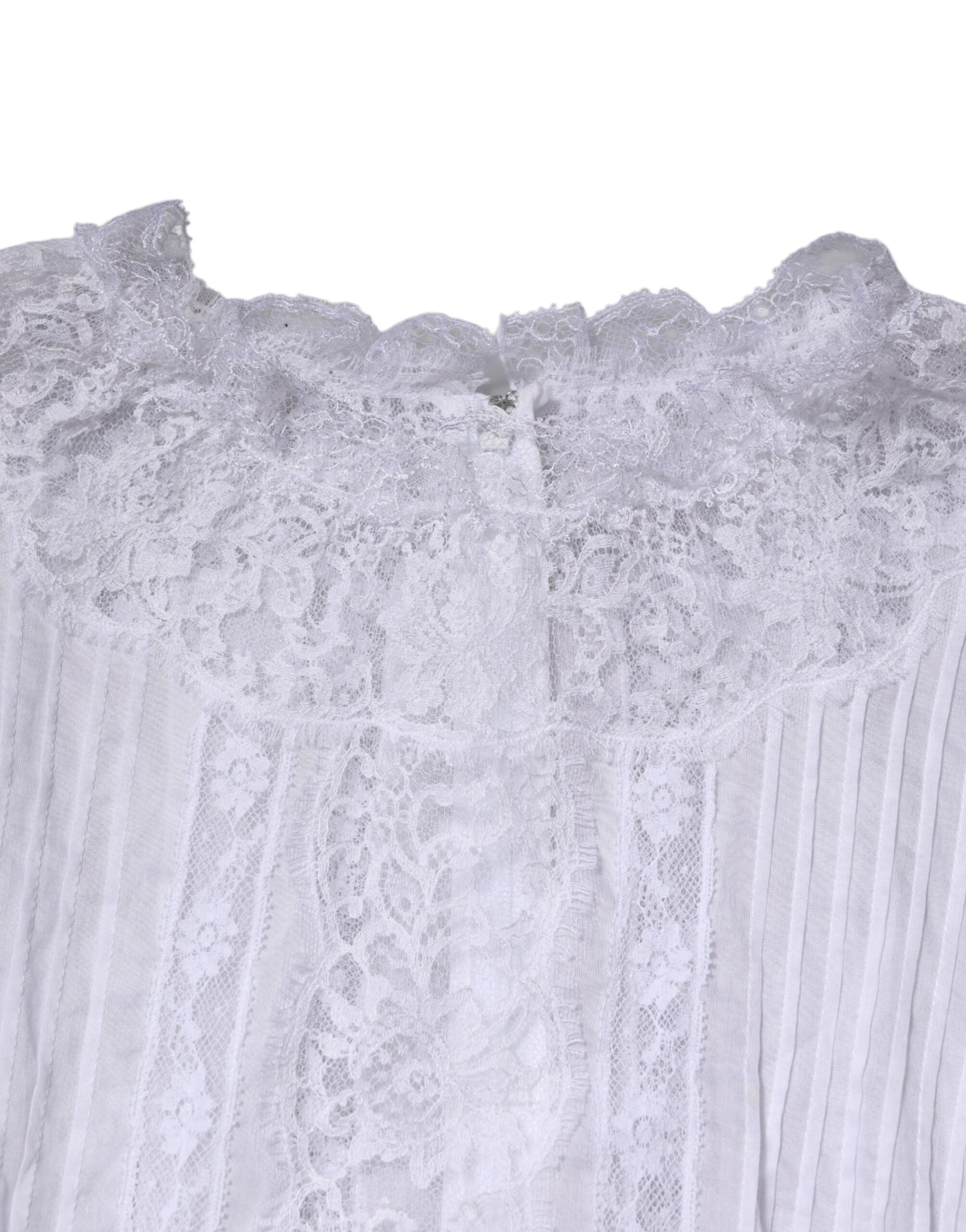 Dolce & Gabbana White Cotton Floral Lace Long Sleeves Top