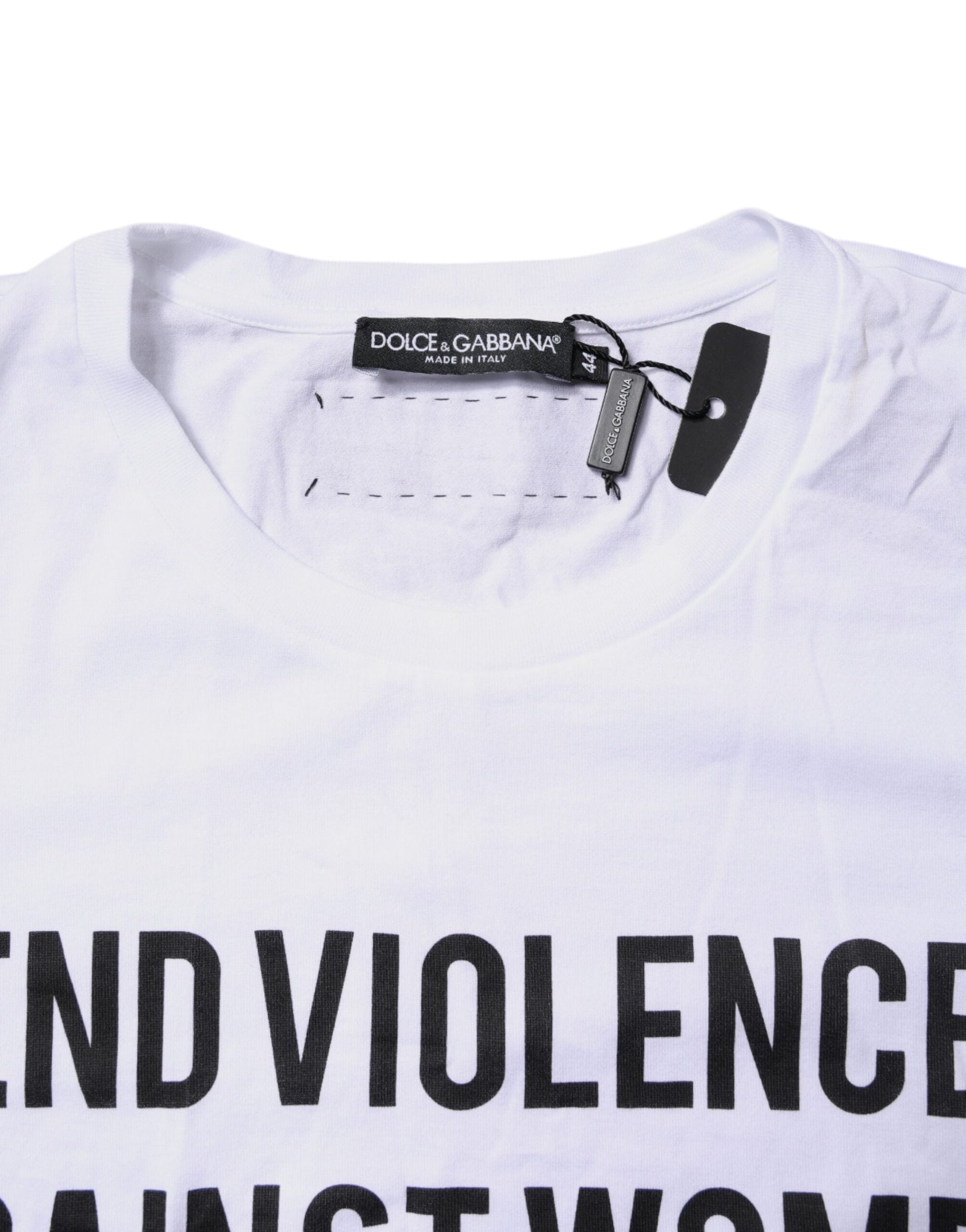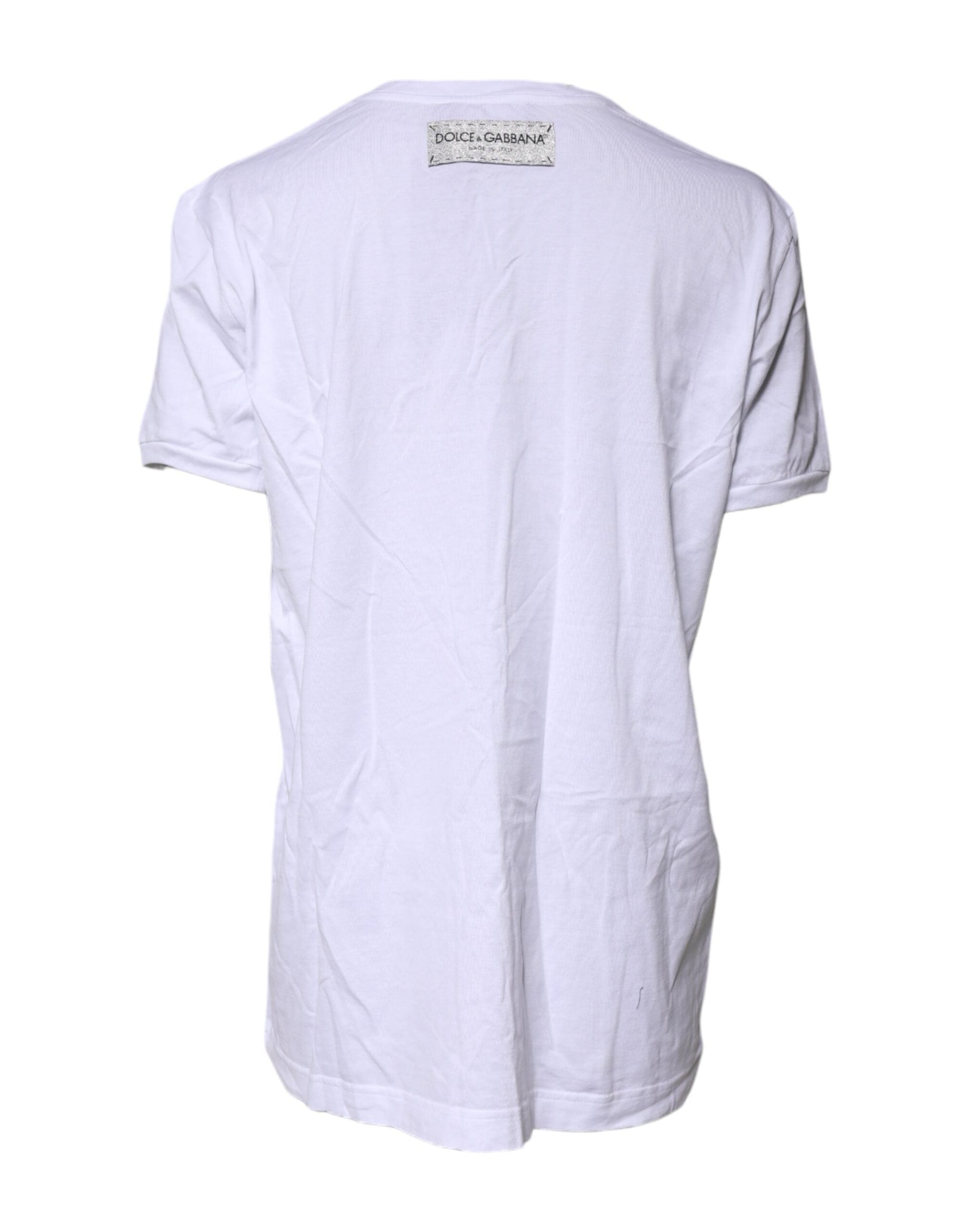 Dolce & Gabbana White Cotton Printed Round Neck Top T-shirt
