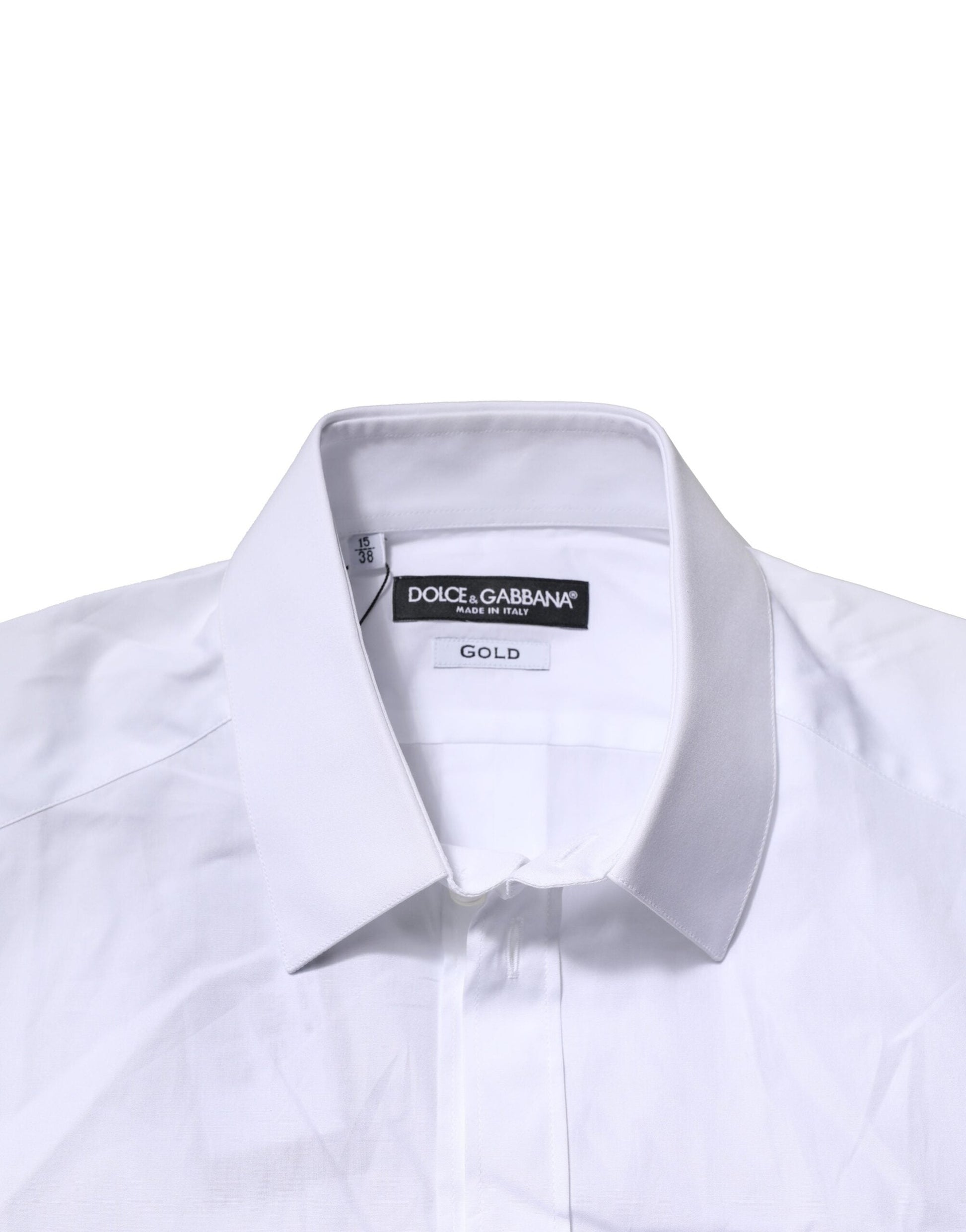 Dolce & Gabbana White Cotton Short Sleeves GOLD Casual Shirt