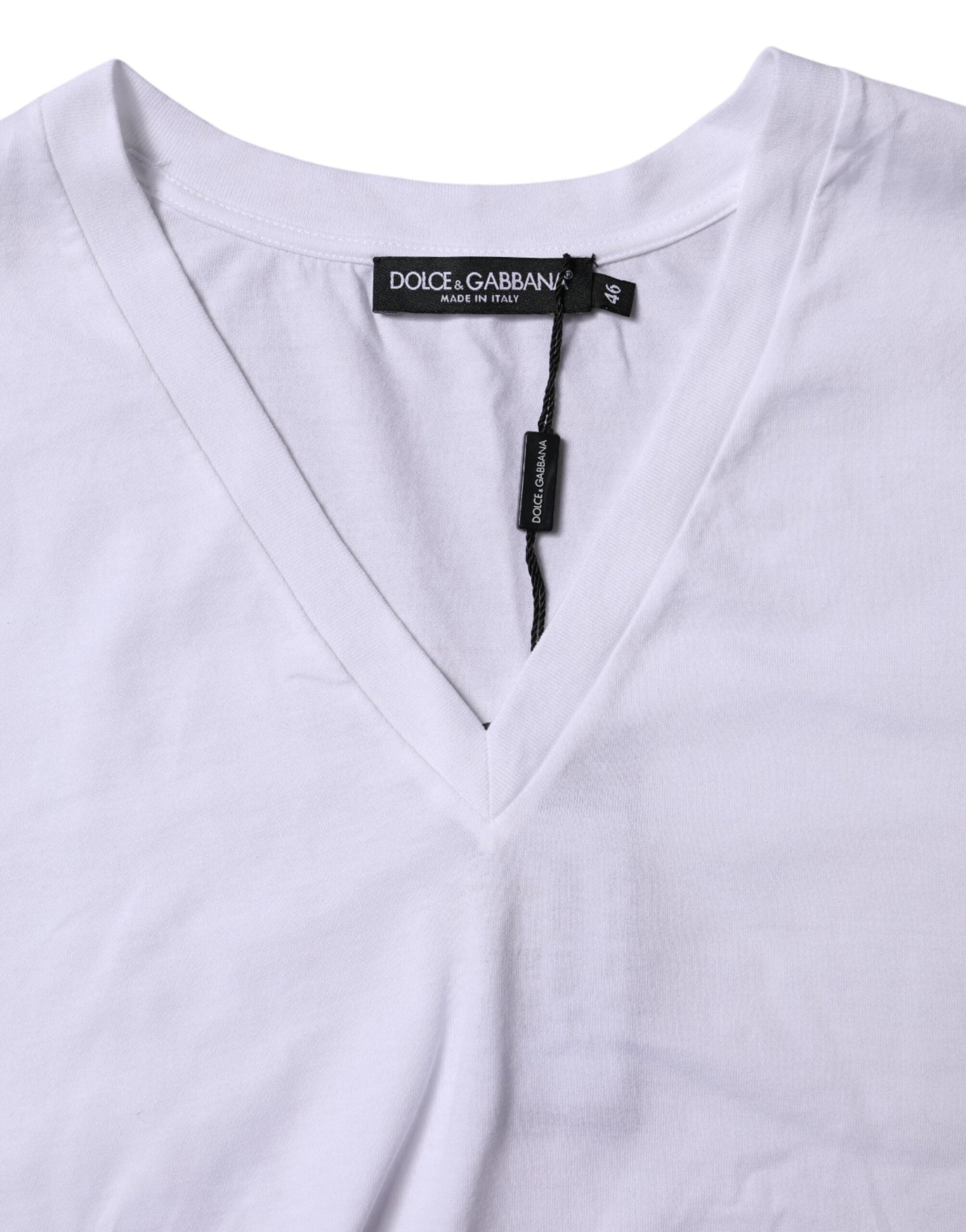 Dolce & Gabbana White Cotton Short Sleeves V-neck T-shirt