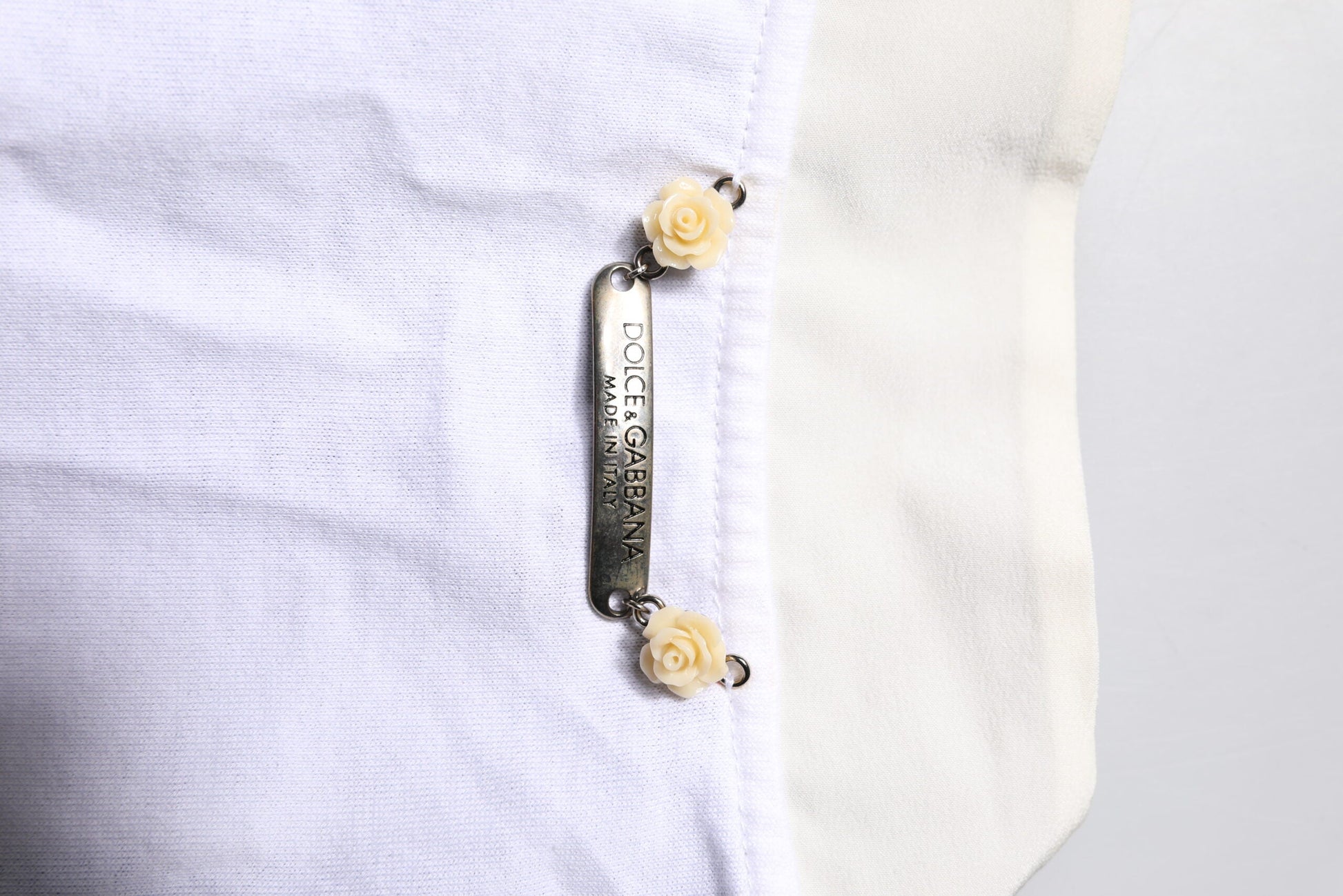 Dolce & Gabbana White Cotton Silk Blend Ascot Collar T-shirt