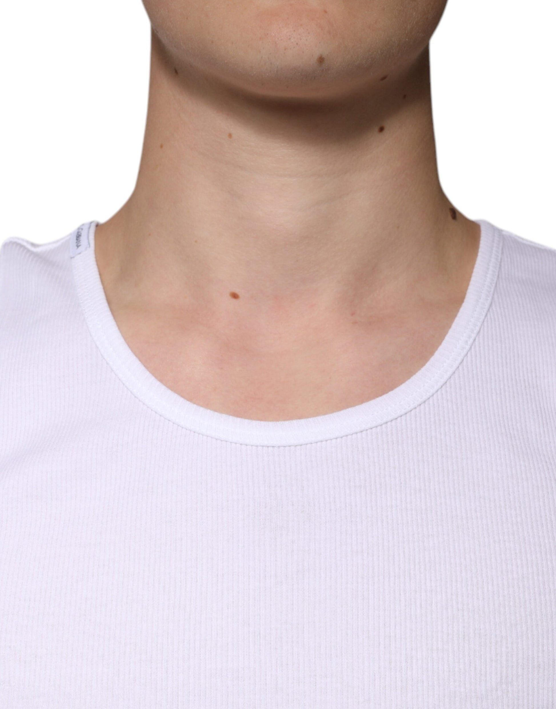 Dolce & Gabbana White Cotton Sleeveless Round Neck Tank T-shirt
