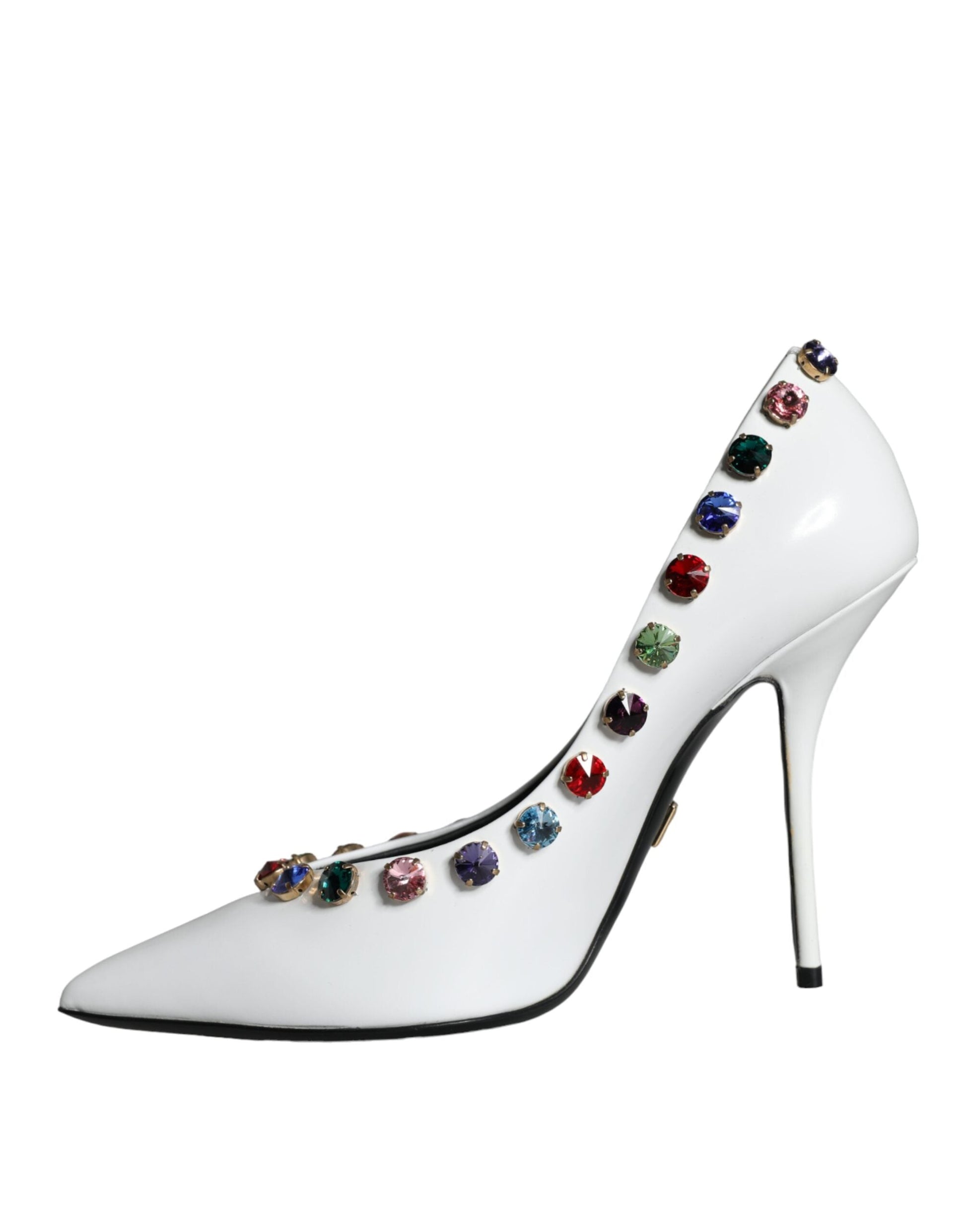 Dolce & Gabbana White Crystal Leather High Heels Pumps Shoes