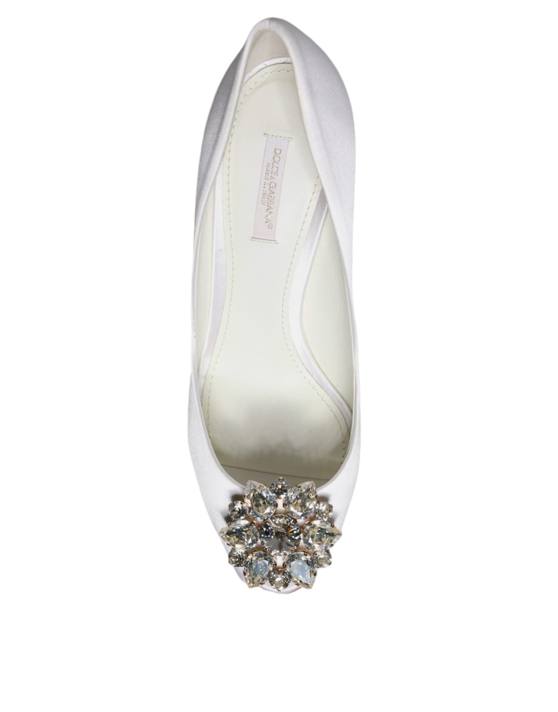 Dolce & Gabbana White Crystals Peep Toe Satin Pumps Shoes
