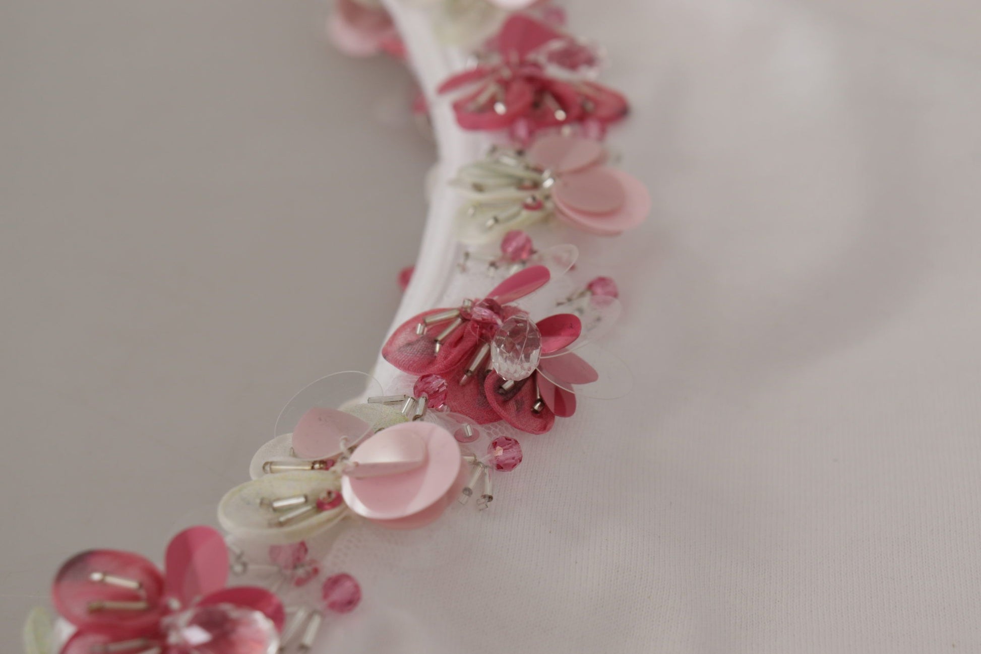 Dolce & Gabbana White DG Crown Floral Sequin T-shirt