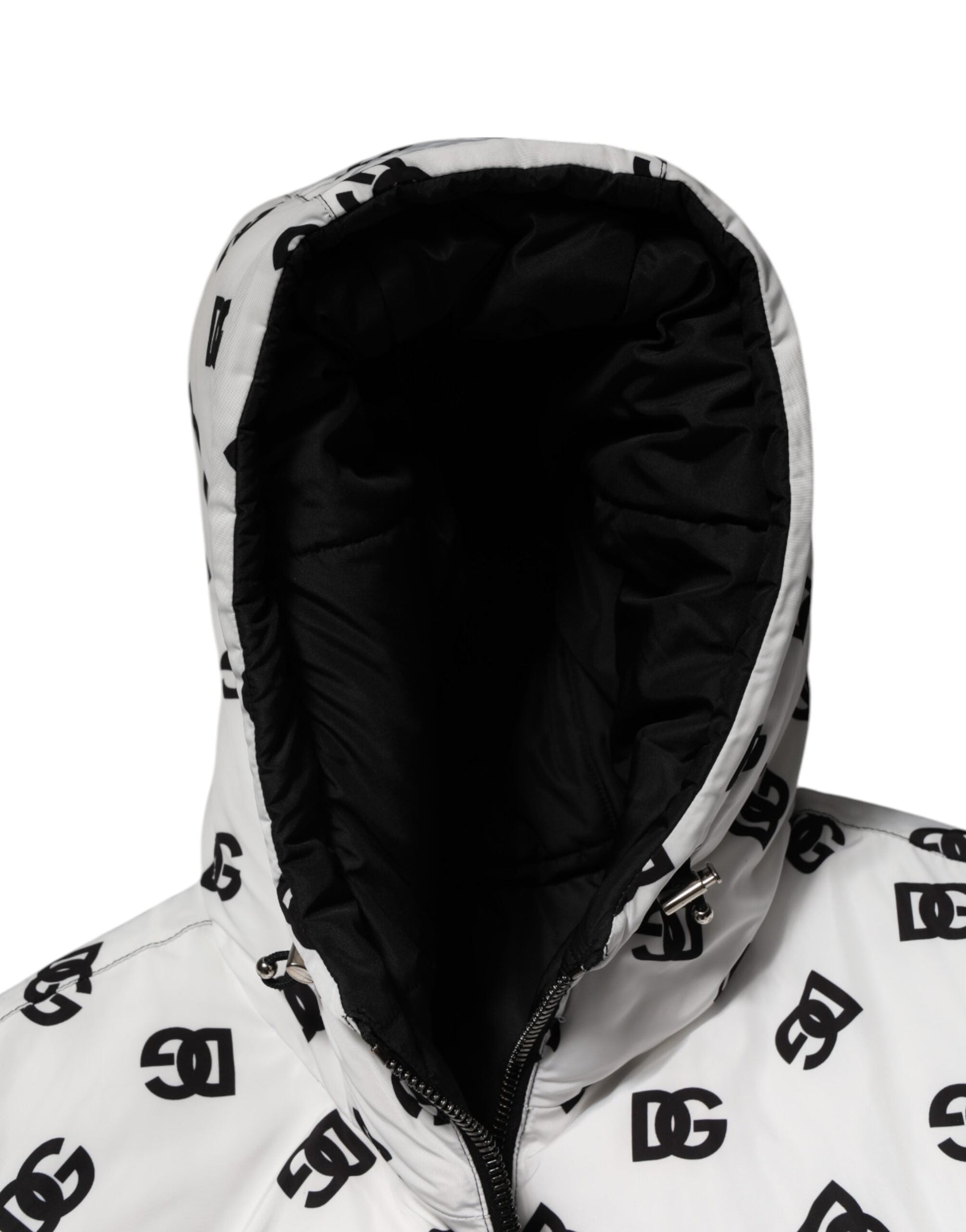 Dolce & Gabbana White DG Monogram Hooded Puffer Jacket