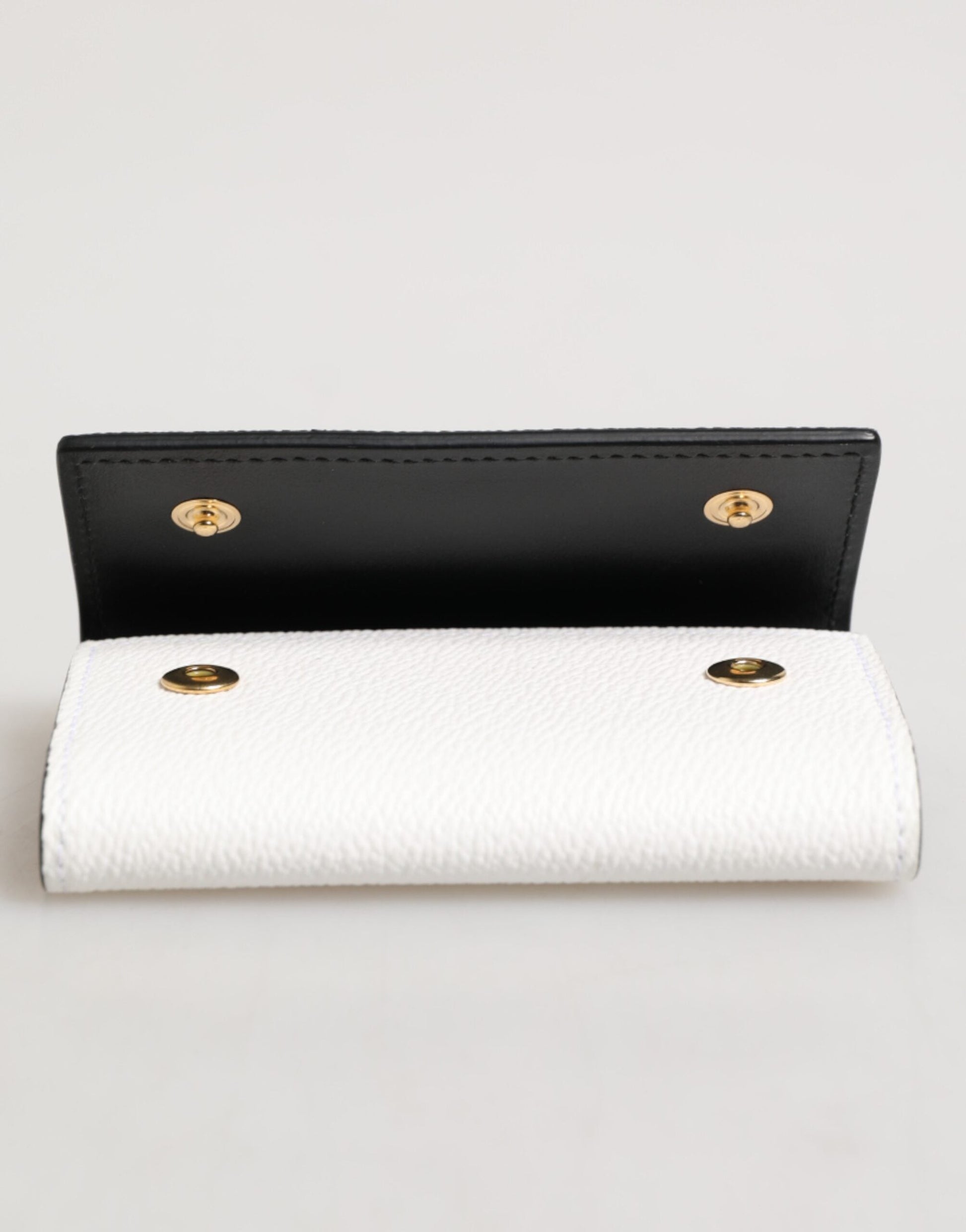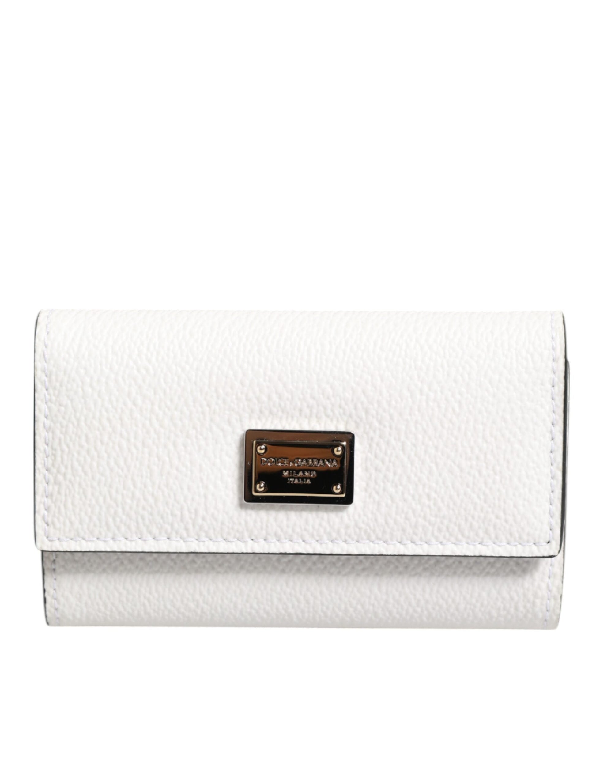 Dolce & Gabbana White Leather Card Case Holder Wallet Gold Logo Plate Key Holder