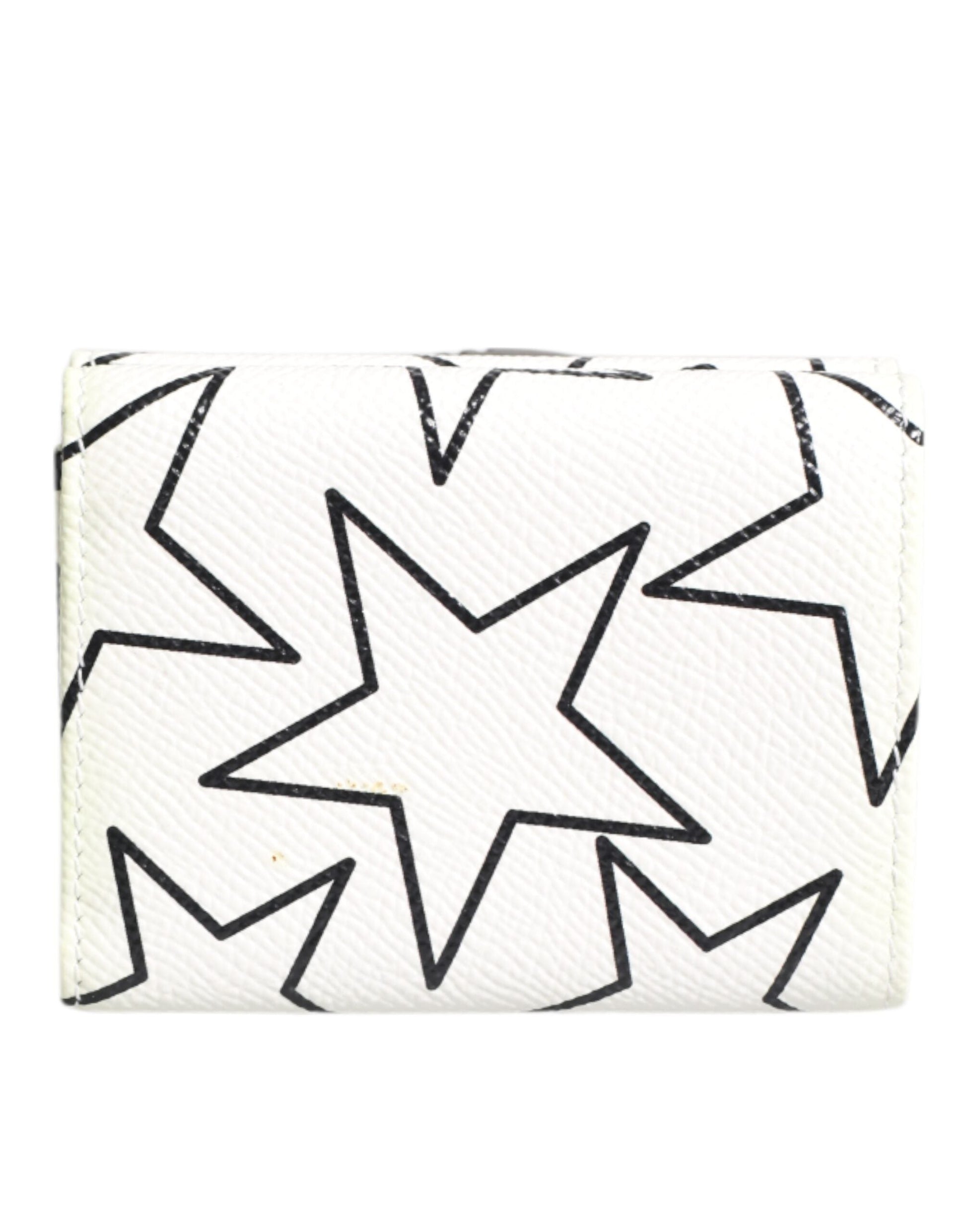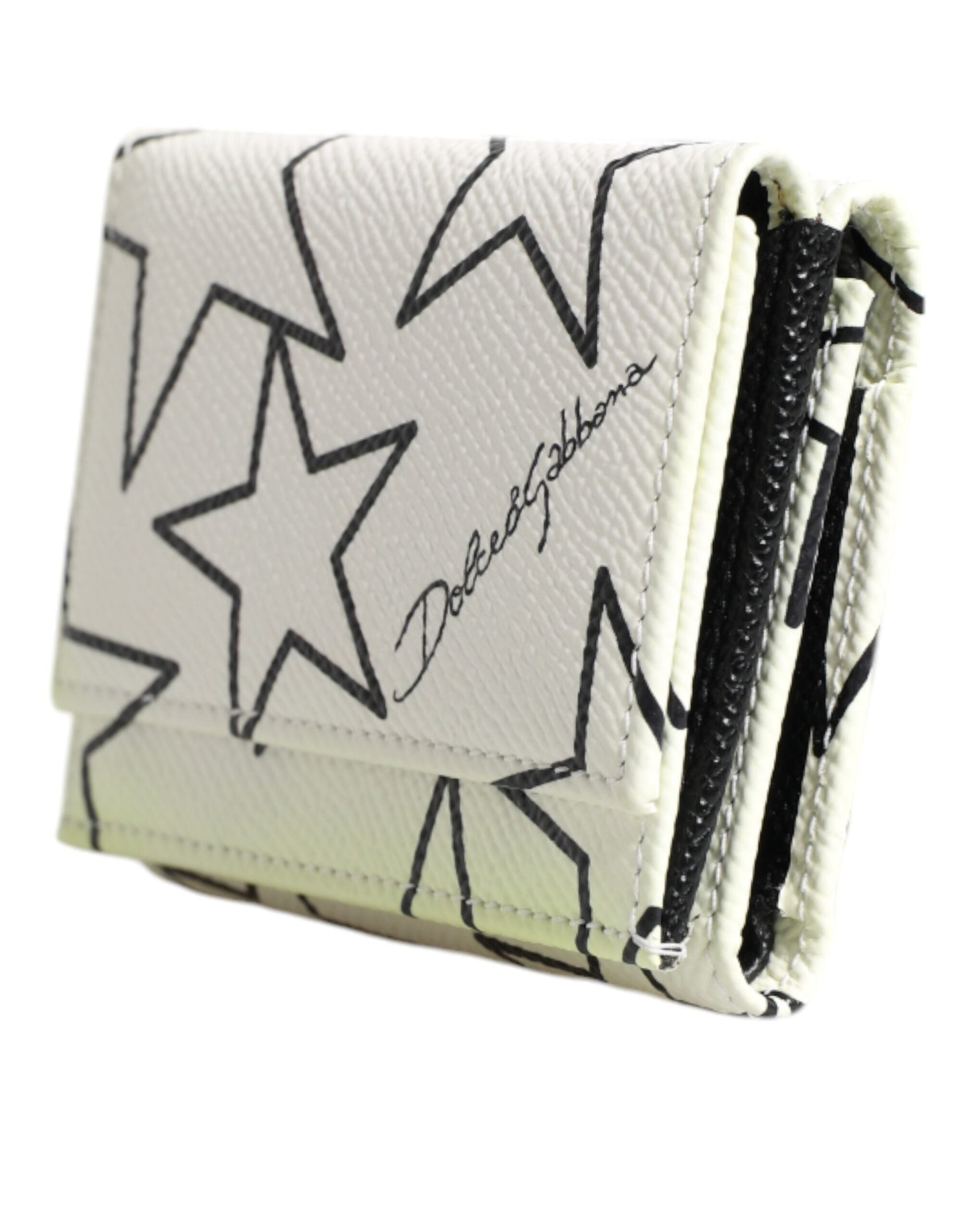 Dolce & Gabbana White Leather Trifold DG Star Print Card Holder Wallet