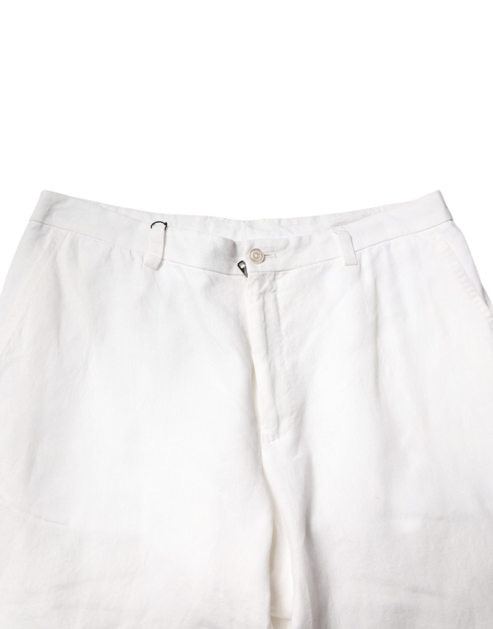 Dolce & Gabbana White Linen Mid Waist Men Dress Pants
