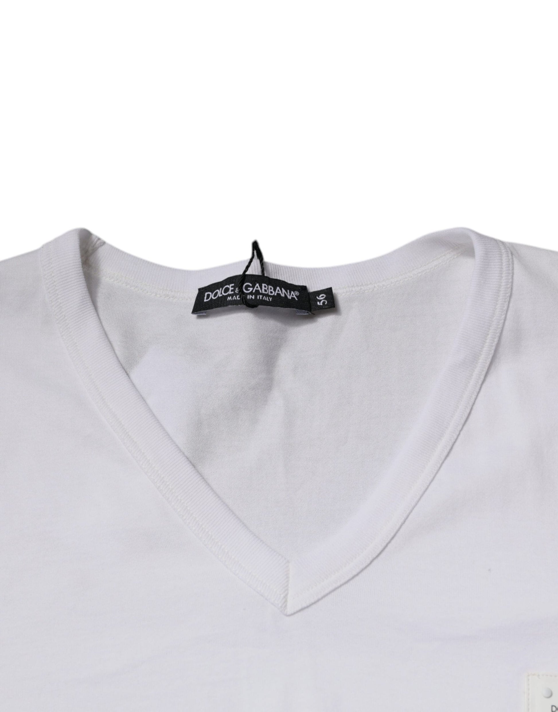 Dolce & Gabbana White Logo V-neck Short Sleeve T-shirt