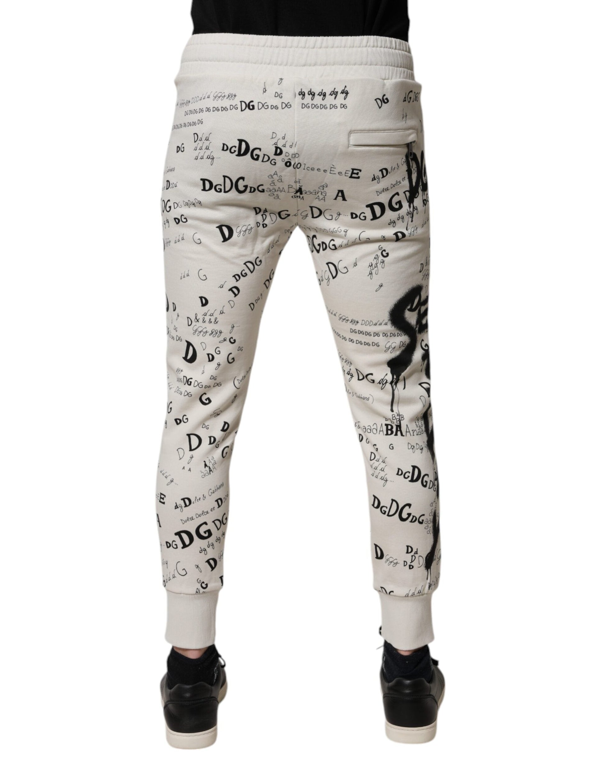 Dolce & Gabbana White Printed Cotton Jogger Sweatpants Pants