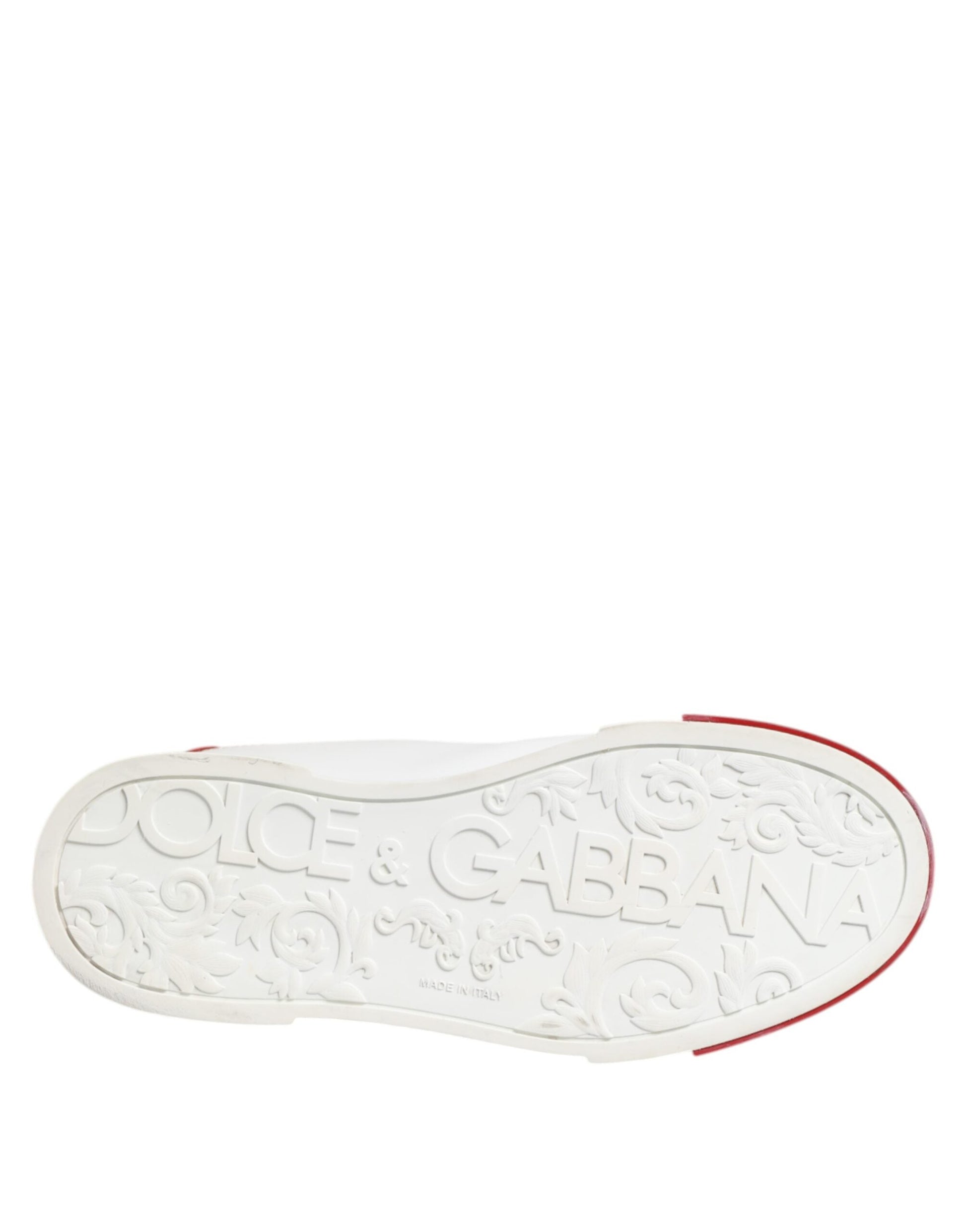 Dolce & Gabbana White Red Leather Lace Up Sneakers Shoes
