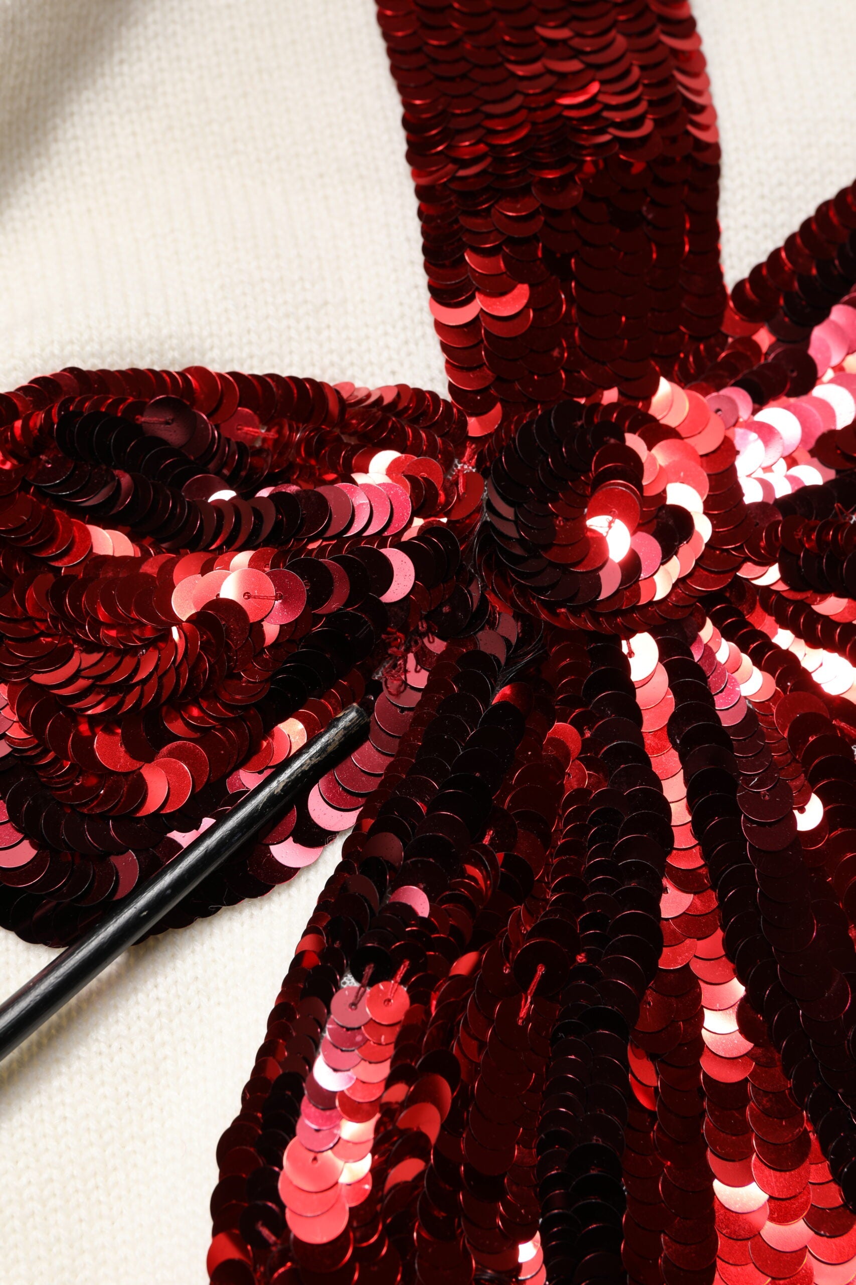 This item has a minor defect, there are missing red sequins on the front side (see pictures for details).