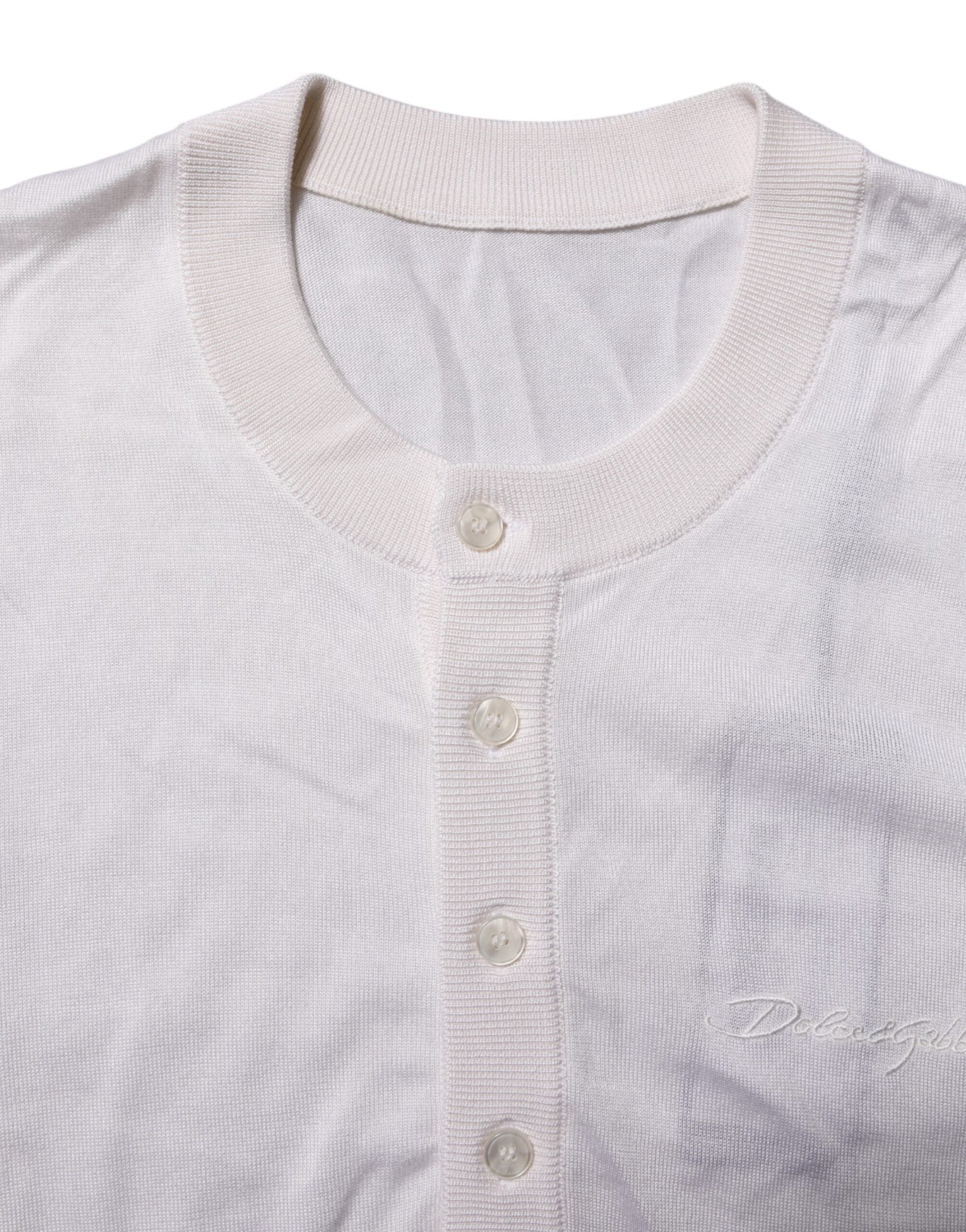 Dolce & Gabbana White Silk Short Sleeves Men Henley T-shirt