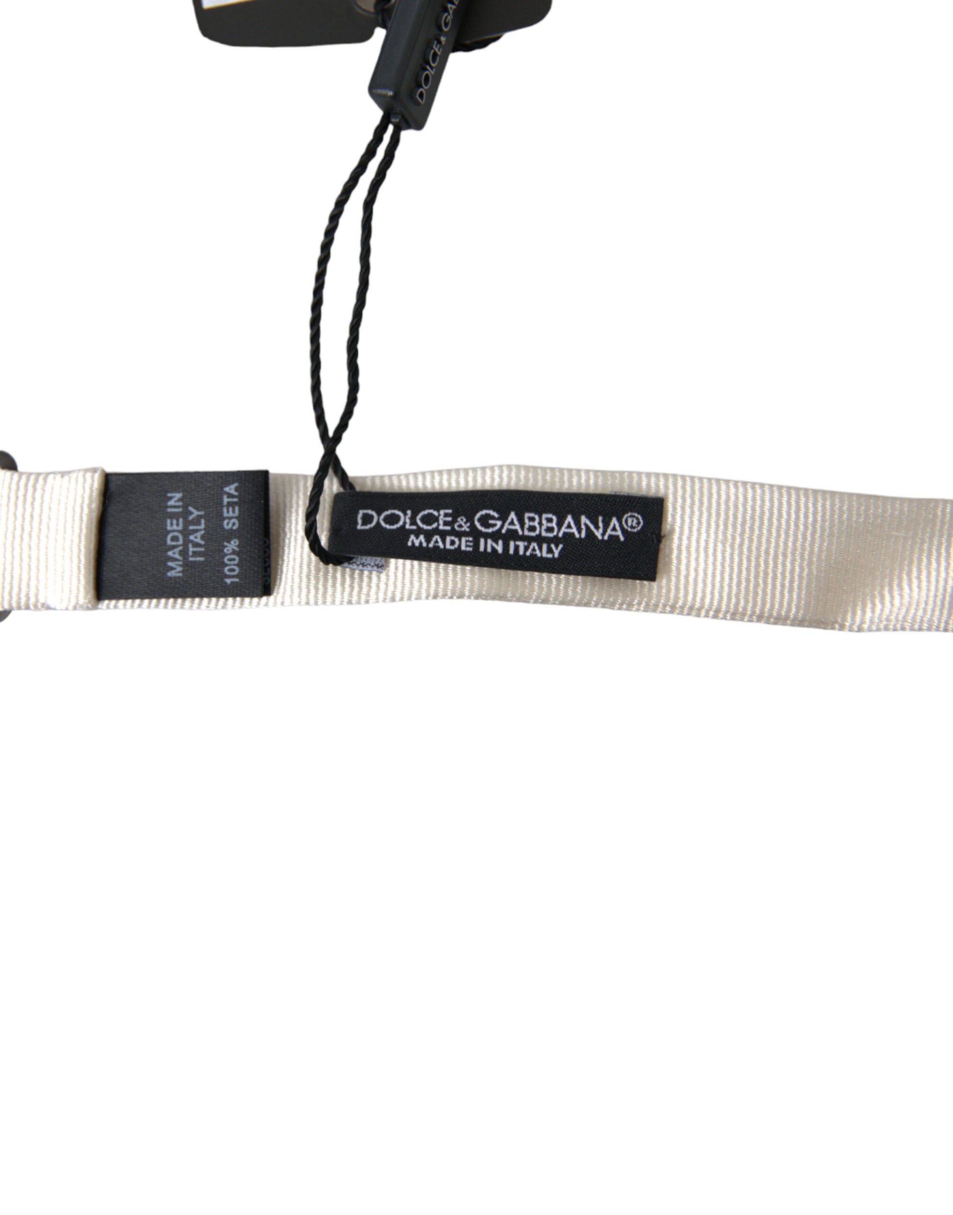 Dolce & Gabbana White Silk Slim Adjustable Neck Papillon Bow Tie