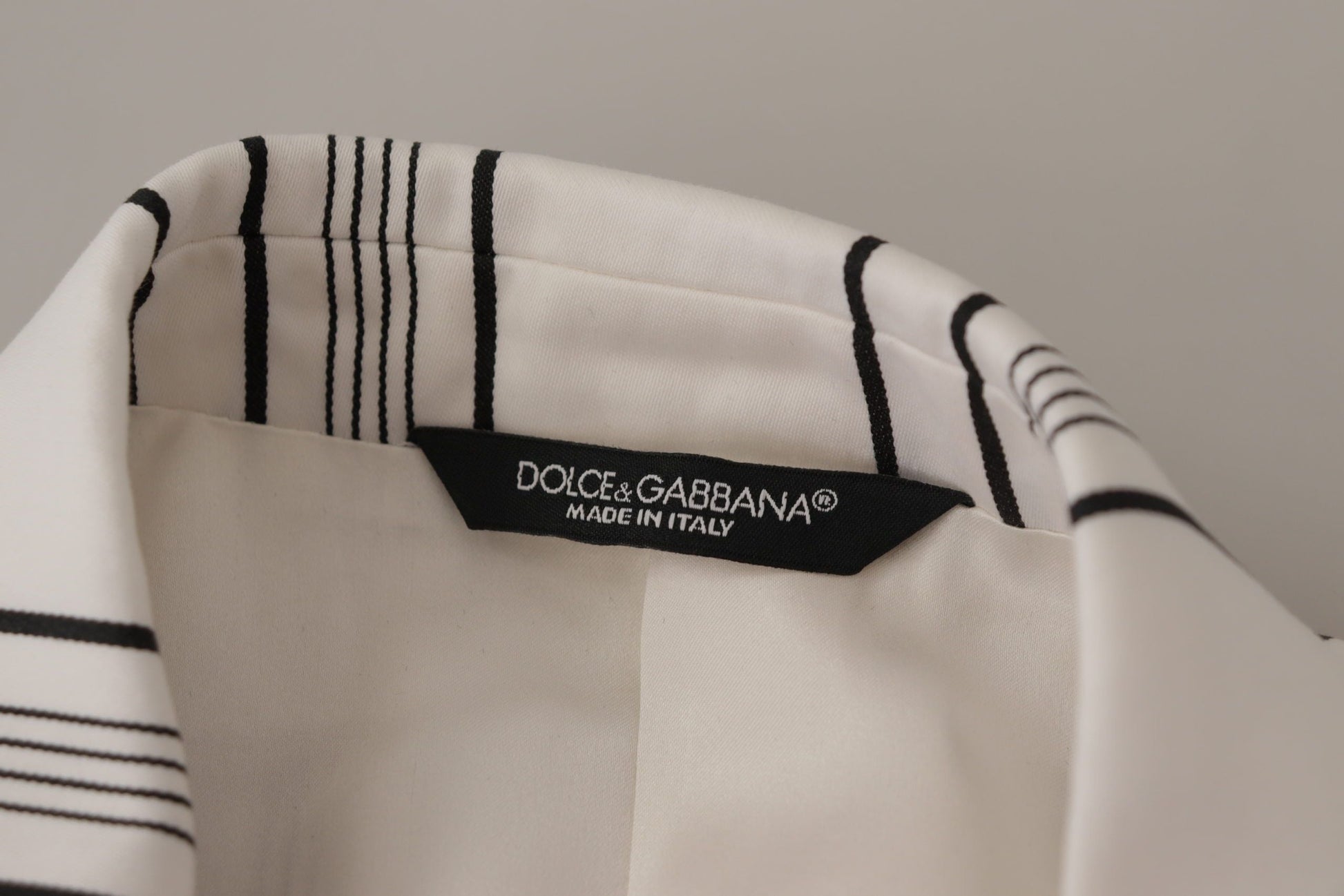 Dolce & Gabbana White Stripes Cotton Single Breasted Blazer
